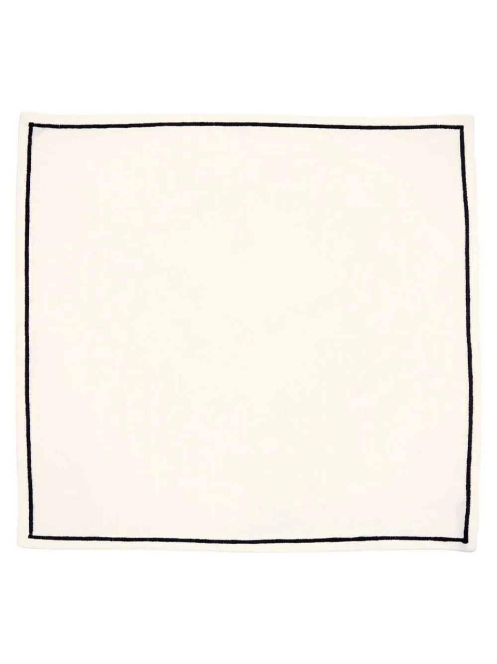 A white textured cotton napkin finished with a charcoal cover stitch. Sold in a set of four. 40x40cms. Length 40cm Width 40cm Machine washable. 100% Cotton.