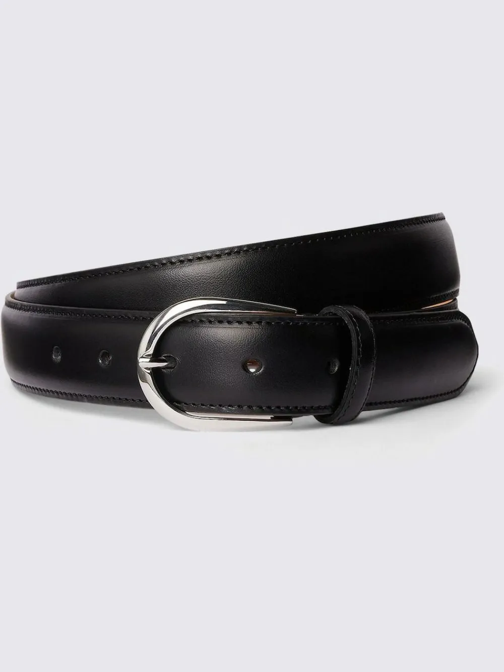 Add Italian-made charm to everyday looks with our black belt. Designed in the finest Italian leather, it fastens with a silver-tone pin buckle in a softly rounded shape. 100% Leather.