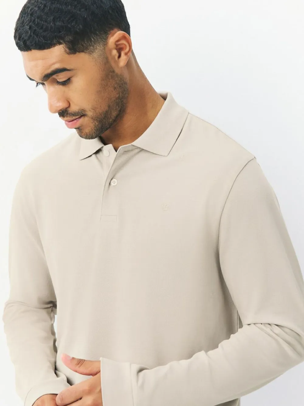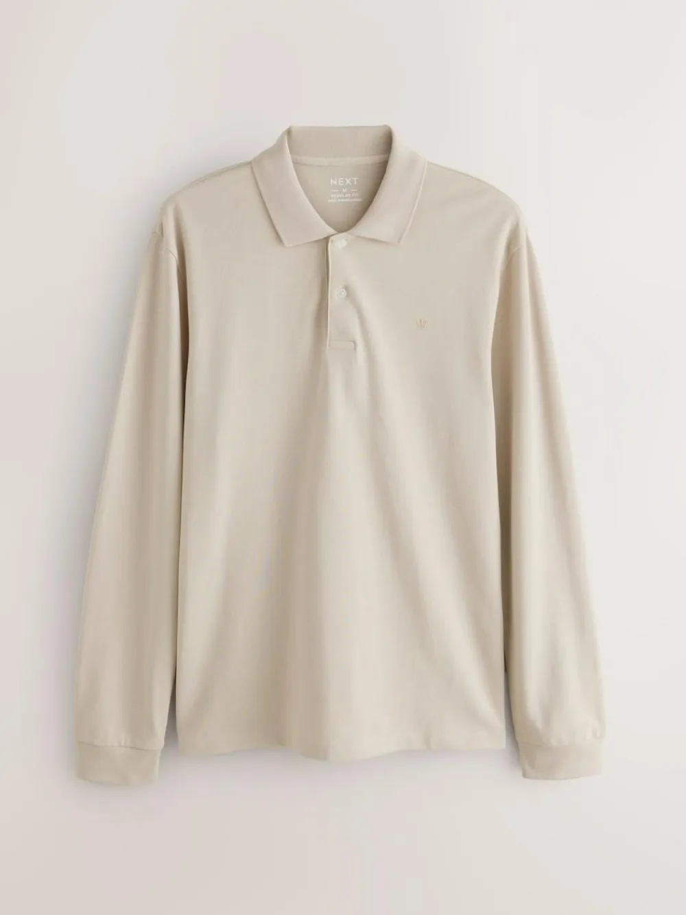 Best Next Ecru Oatmeal Regular Fit Long Sleeve Pique Polo Shirt