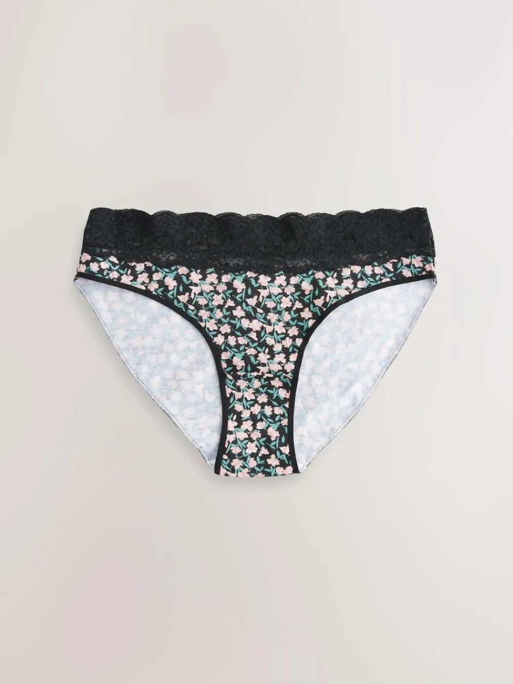 Best Next High Leg Cotton and Lace Knickers 7 Pack Printed Spot