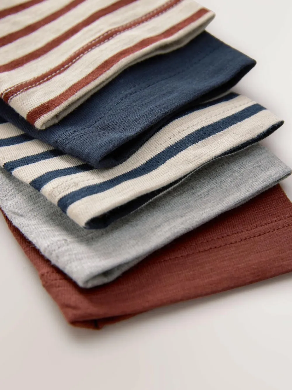 Stock up on everyday essentials with our long sleeve t-shirts 5 pack. This handy pack ensures he’ll always have a comfortable top ready for any activity. Made from soft and durable fabric, these long-sleeved tees are perfect for layering in cooler weather or wearing on their own. A versatile staple for his wardrobe, this 5 pack offers great value and practicality for playtime and beyond. Machine washable. T-shirt, T-shirt, T-shirt and T-shirt 100% Cotton. T-shirt 90% Cotton, 10% Viscose.