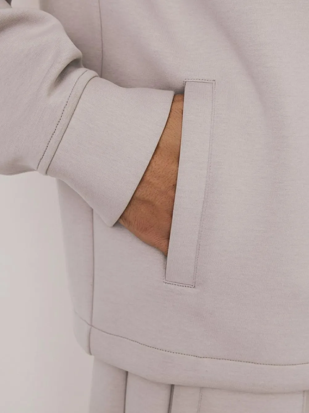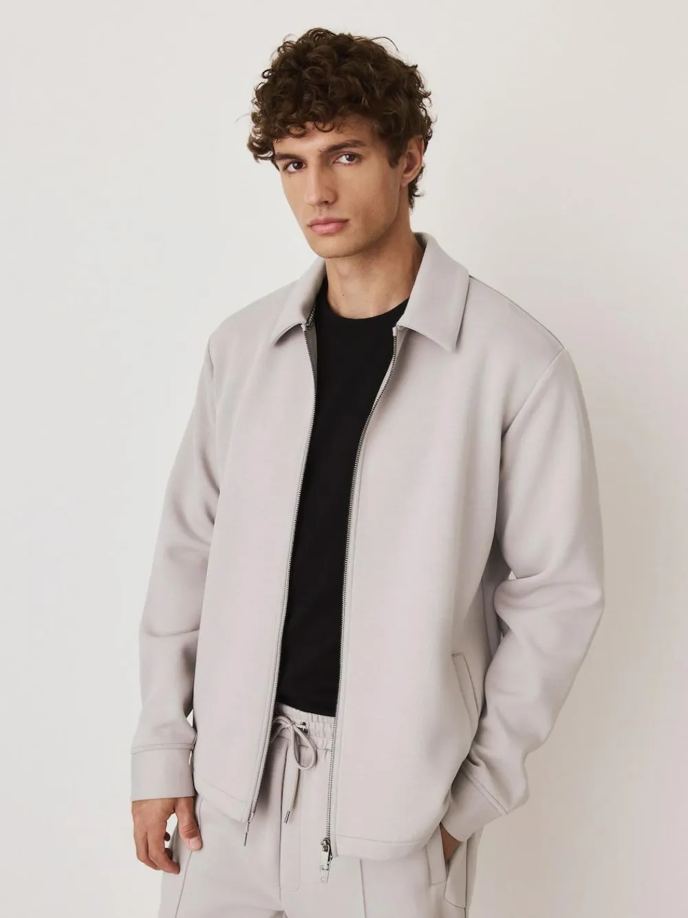 Elevate your casual layering with this sleek Soft-Touch Scuba Zip-Through Shacket. Coming in ice grey, it’s crafted from a premium soft touch scuba fabric, and offers a modern, smooth feel and smart-casual styling. The regular fit is complemented by a versatile two-way zip and practical side entry pockets, making it the perfect refined outer layer. Available in standard sizes. Premium soft-touch scuba fabric Smart casual styling Practical two-way zip Side entry pockets Regular fit Available in standard sizes Best for refined casual layering Machine washable. 70% Recycled polyester, 23% Cotton, 7% Elastane.