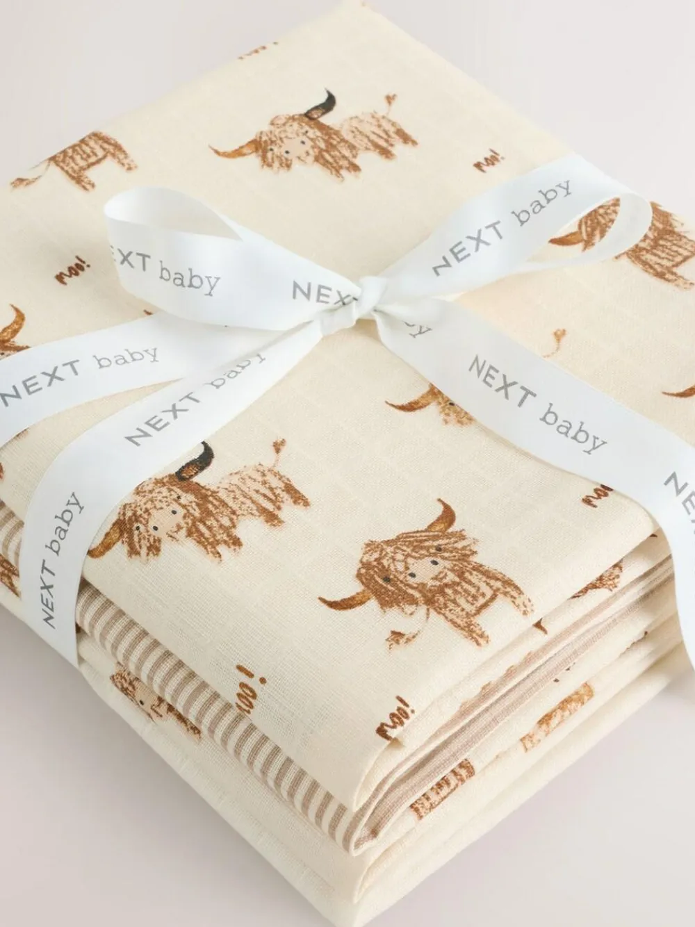 Best Next Neutral Hamish the Cow Baby Muslin Cloths 4 Pack