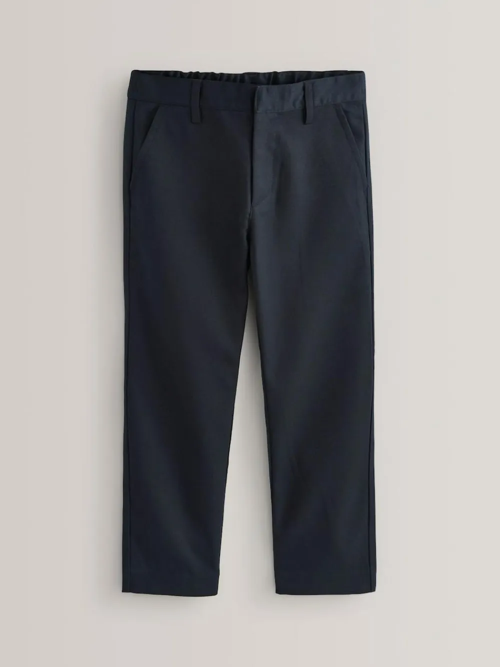 Go back to school in style with our formal straight trousers in navy blue. The adjustable plus waist and straight-leg silhouette make these flat-front trousers a stylish addition to their school uniform. Made with an easy iron fabric, hook and bar fastening and zip fly. Plus Waist: +2 inches for a wider fit on the waist. Key Features: Easy Iron fabric – Handy easy-iron finish Teflon® Technology – a treatment that repels water and water-based stains for easy cleaning and quick drying Machine washable Adjustable waist Flat front Straight leg style Plus waist Machine washable. 65% Recycled polyester, 35% LENZING™ ECOVERO™ Viscose. Plus fit styles are more generous through the waist and hips for a comfortable fit. , This product is made with teflon. Teflon® is a registered trademark of DuPont.