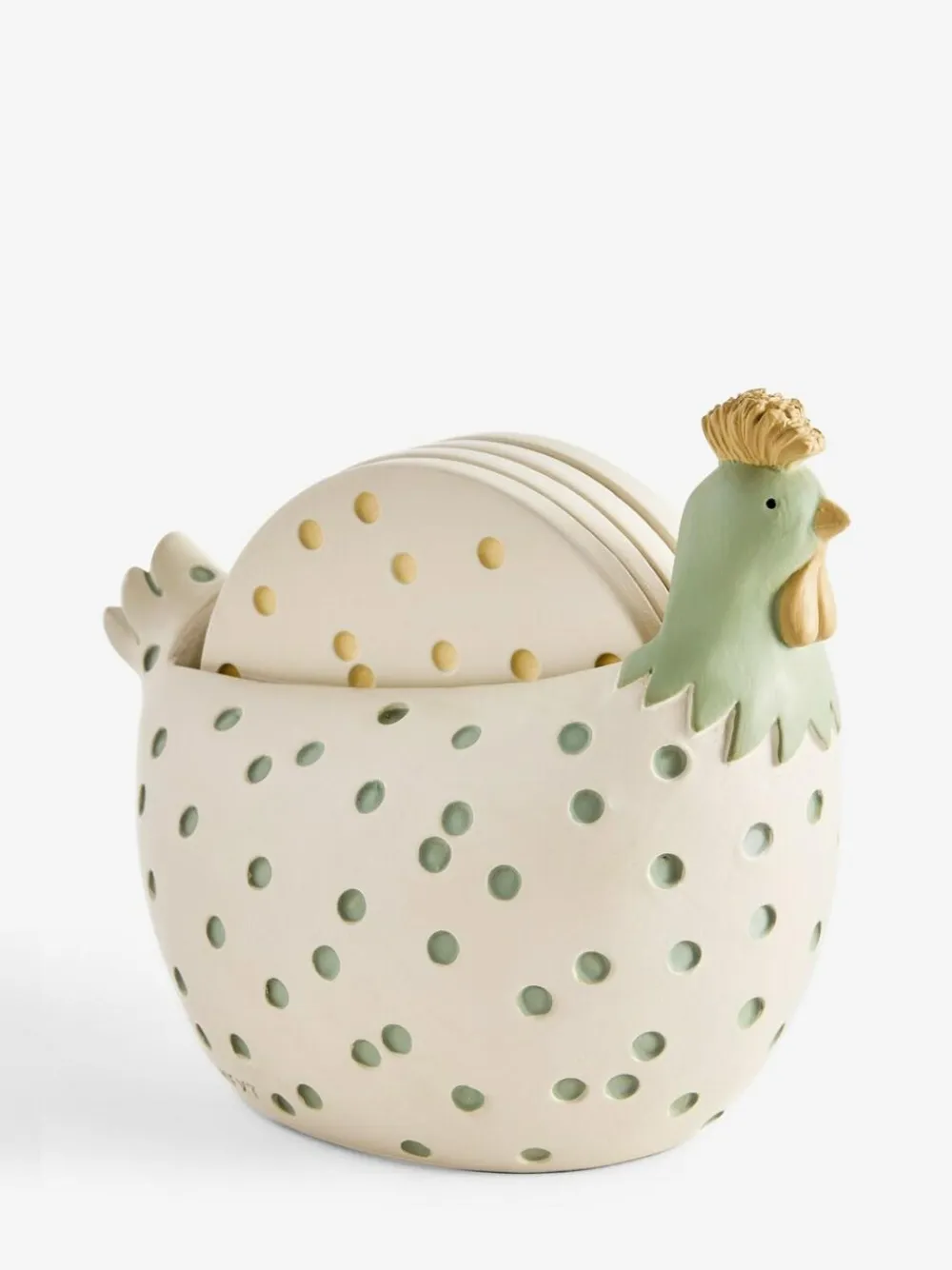 Best Next Set of 4 Sage Green Spot Chicken Coasters