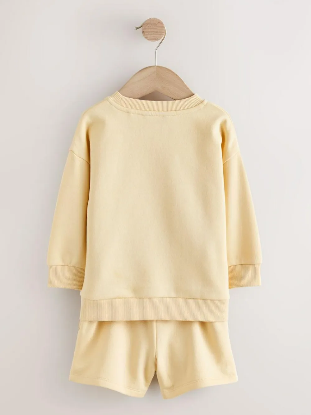 Best Next Single Plain Crew Neck Sweatshirt and Shorts Set (3mths-7yrs) Light Yellow