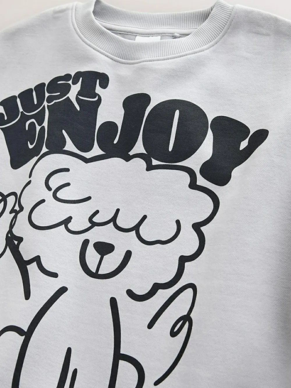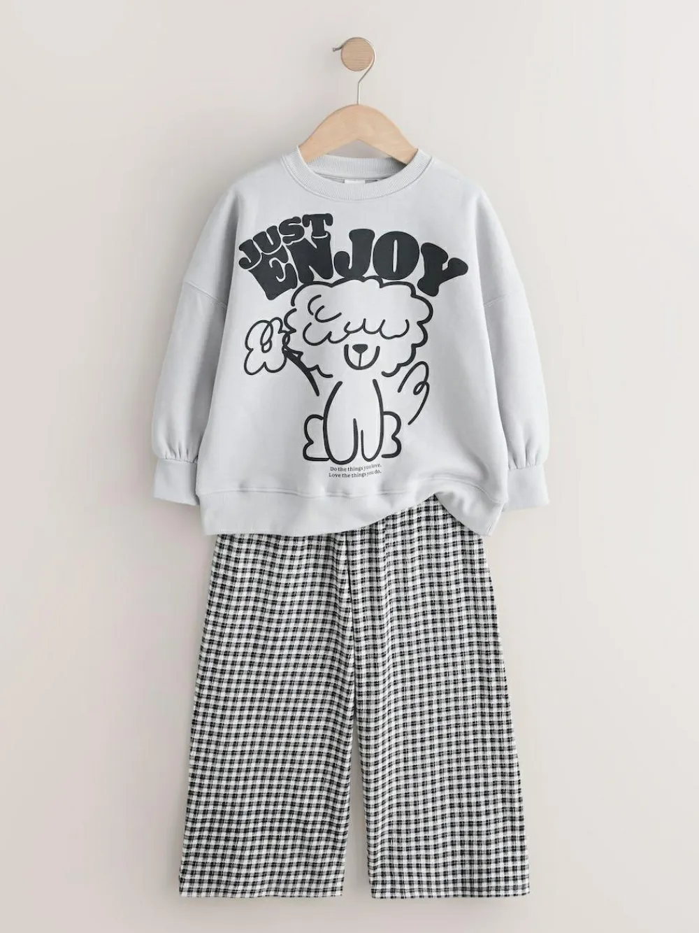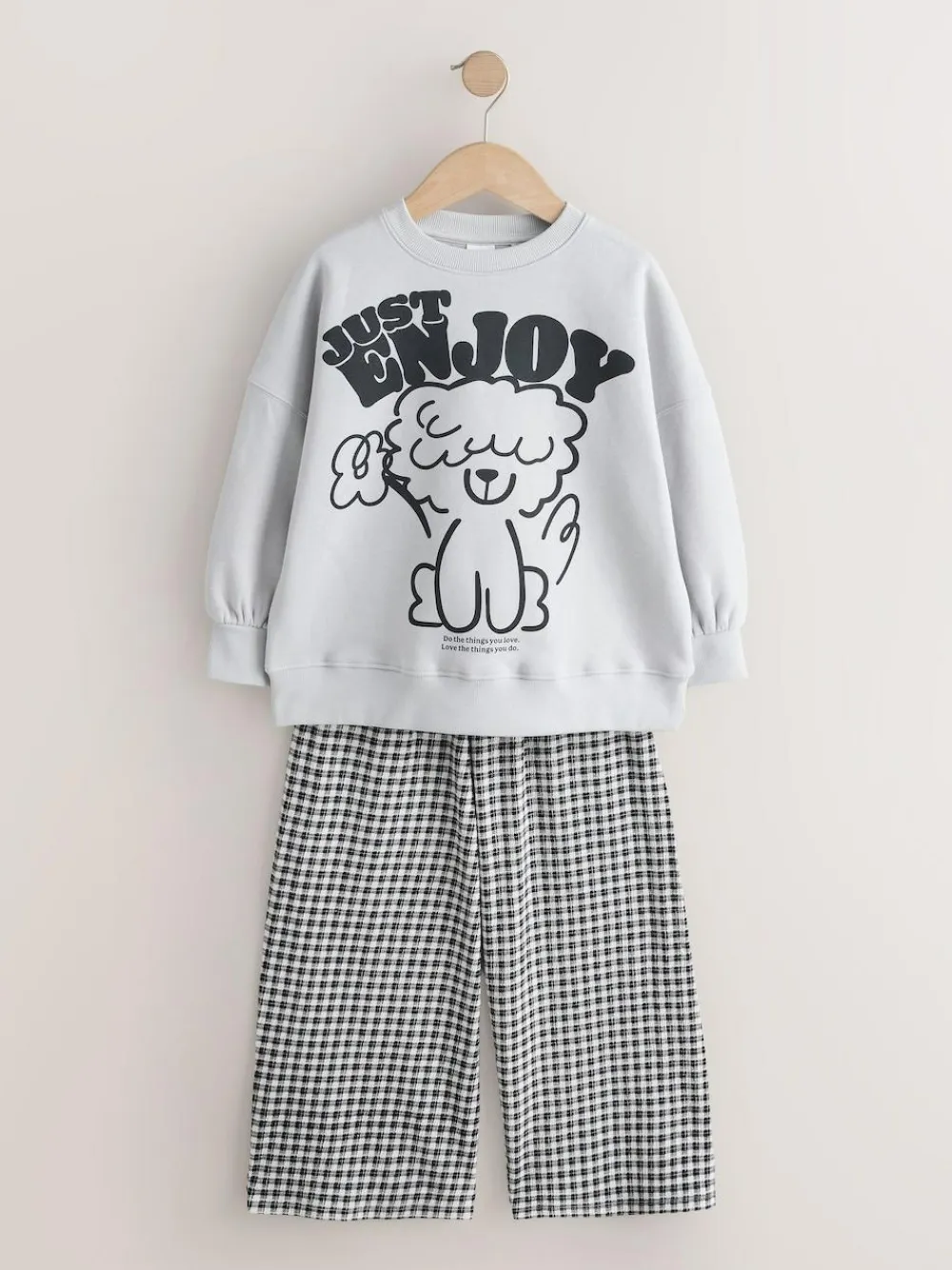 Best Next Sweatshirt and Wide Leg Trousers Set (3-16yrs) Grey/Gingham Dog