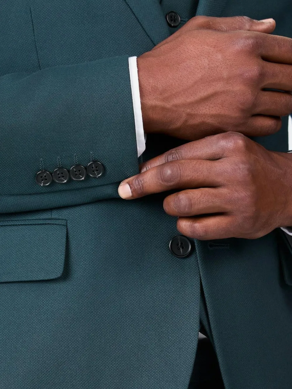Inspired by silhouettes from London’s famous home of tailoring, our textured suit jacket offers a sleek, slim fit in an elegant single-breasted design. Notched lapels, printed lining, flap pockets, a 4 button cuff and contrast pocket square ensure a perfectly tailored look. Switch up your brogues and shirt for a fine knit and trainers for a modern take on refined style Textured suit jacket Single breasted Notched lapels Button-up fastening Front pockets Pull-out pocket square Printed lining Check out The Suit Shop for more inspiration – https://www.next.co.uk/men/the-suit-shop Main 62% Recycled polyester, 35% Viscose, 3% Polyester. Lining 100% Recycled polyester.
