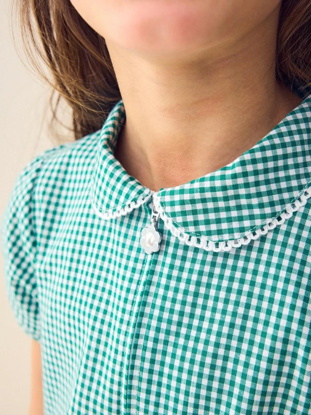 Make mornings so much simpler with our gingham playsuit. Made from a cotton-rich blend to keep them cool and comfortable throughout the busy school day. With puff sleeve detailing, this playsuit features a unique flower charm on the zip, which will make dressing a breeze. Key features Easy Iron Fabric – Handy easy-iron finish Cotton Rich – Cotton rich blend for ultimate comfort and breathability. Machine Washable Short puff sleeve Zip fastening with flower charm Collar Machine washable. 60% Cotton, 40% Polyester.