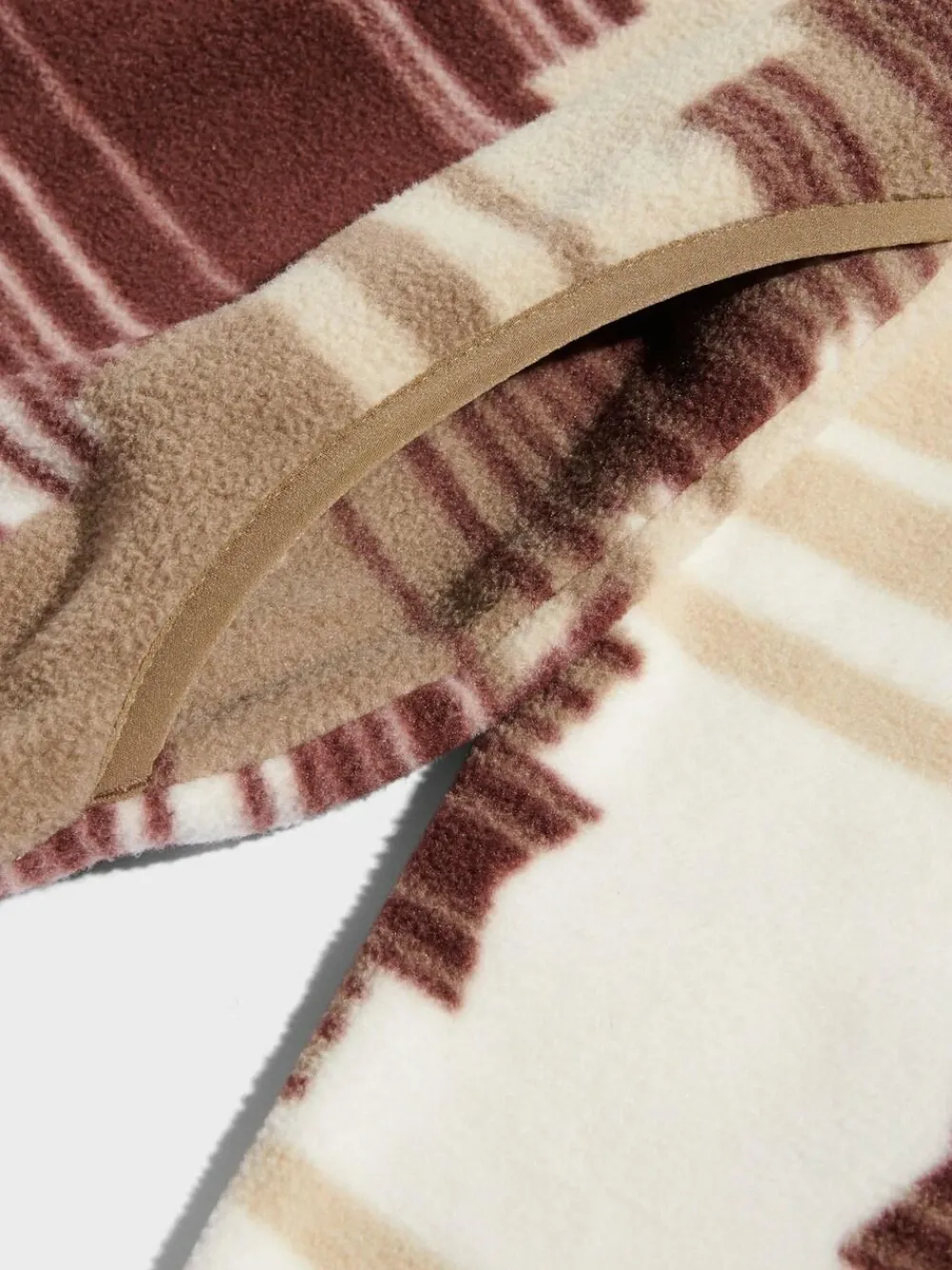 New England-Inspired Fleece Inspired by the textile heritage of New England mill towns, this fleece brings a bold geometric print to a cold-weather staple. Made from polyester printed polar fleece, it’s built for warmth, comfort, and durability. The quarter zip neck gives you ventilation when needed, while elastic binding at the cuffs and hem keeps the warmth in. Curved side seam pockets: With bound edges for secure storage. Woven locker loop: Located at the back neck for easy hanging. Contrast flecked cord zip puller: Adds a stylish detail. Subtle branding on the chest: Finishes the look. Layer over a base layer for hikes, coffee runs, or just staying warm outdoors. Machine washable. 100% Polyester.
