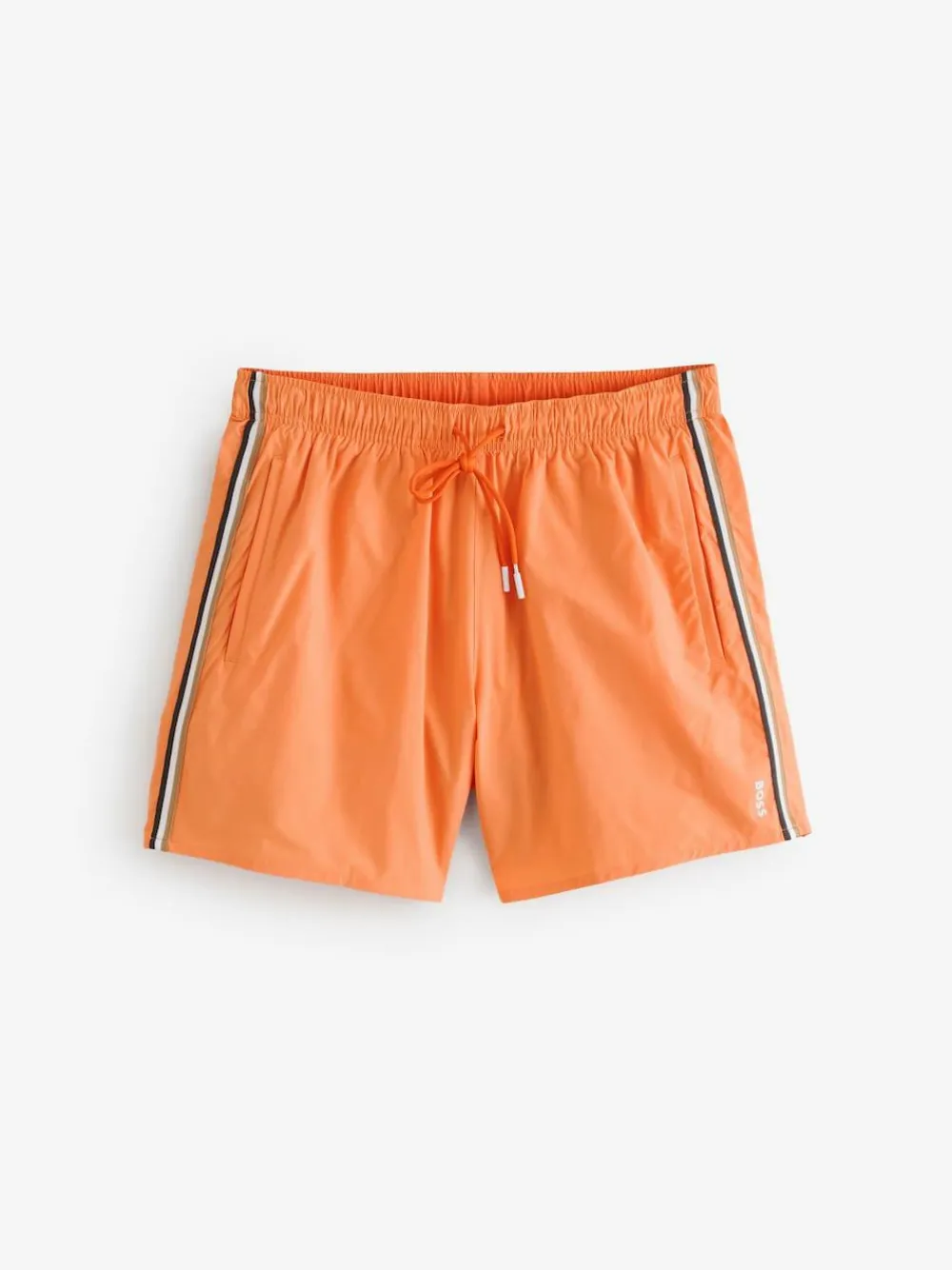 Make a splash with these BOSS Iconic Side Stripe Swim Shorts. Featuring a classic design with iconic side stripes, these swim shorts are perfect for hitting the beach or pool in style. Stay cool and fashionable all summer long. Machine washable. 100% Elastomultiester.