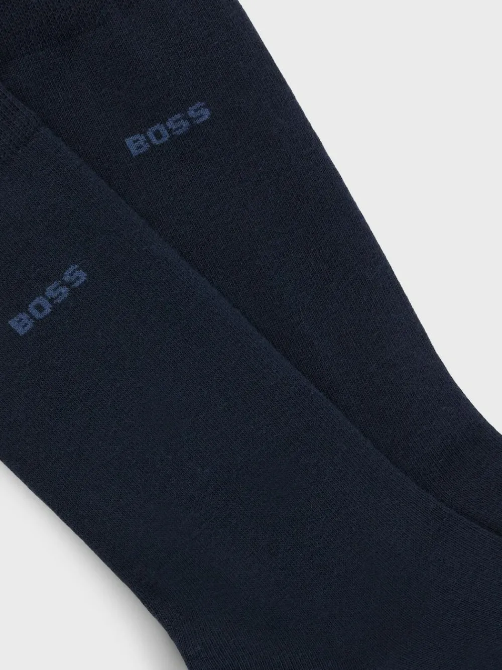 Two pairs of elegant socks in a regular length by BOSS. Trimmed with subtle logos, each pair is crafted in a soft stretch blend. 60% Cotton, 37% Polyester, 3% Elastane.
