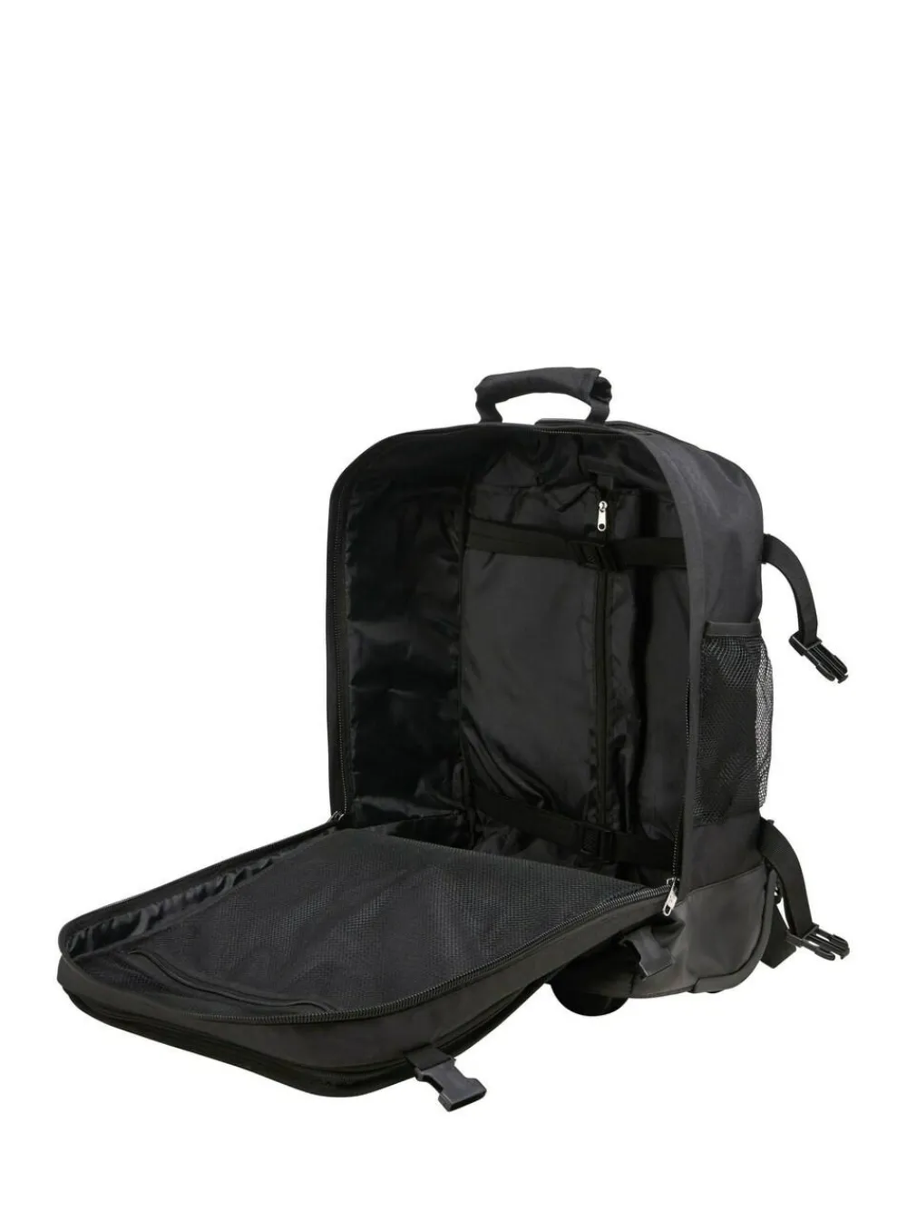 Lightweight HYBRID carry-on luggage that can be used as either a trolley bag or a cabin backpack. Switch easily with zip-out backpack straps between trolley and backpack depending upon your environment. 45x36x20 cm dimensions and lightweight at 1.7kg. Perfect for complying with EasyJet’s new under-seat hand luggage bag rules and avoiding extra fees. The Greenwich features a lightweight telescopic handle, and robust wheels and is made from showerproof 600D PU material. 30-litre interior. Internal packing straps. Comprehensive front pocket with compartments for tickets, travel accessories and an iPad. 100% Polyester.