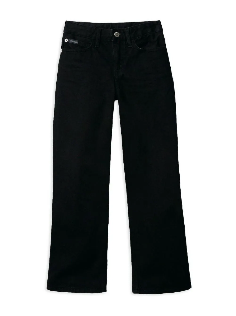 From everyday favourites to style-enthusiast looks, Calvin Klein Jeans Kids combines quality materials and trend-perfect colours with iconic logos on directional designs. Highlights: Include rigid denim Adjustable waistband Zip fly Five-pocket styling Clean black wash Calvin Klein branded hardware Logo badge Shape and fit Wide leg fit High rise waist Machine washable. 100% Cotton.
