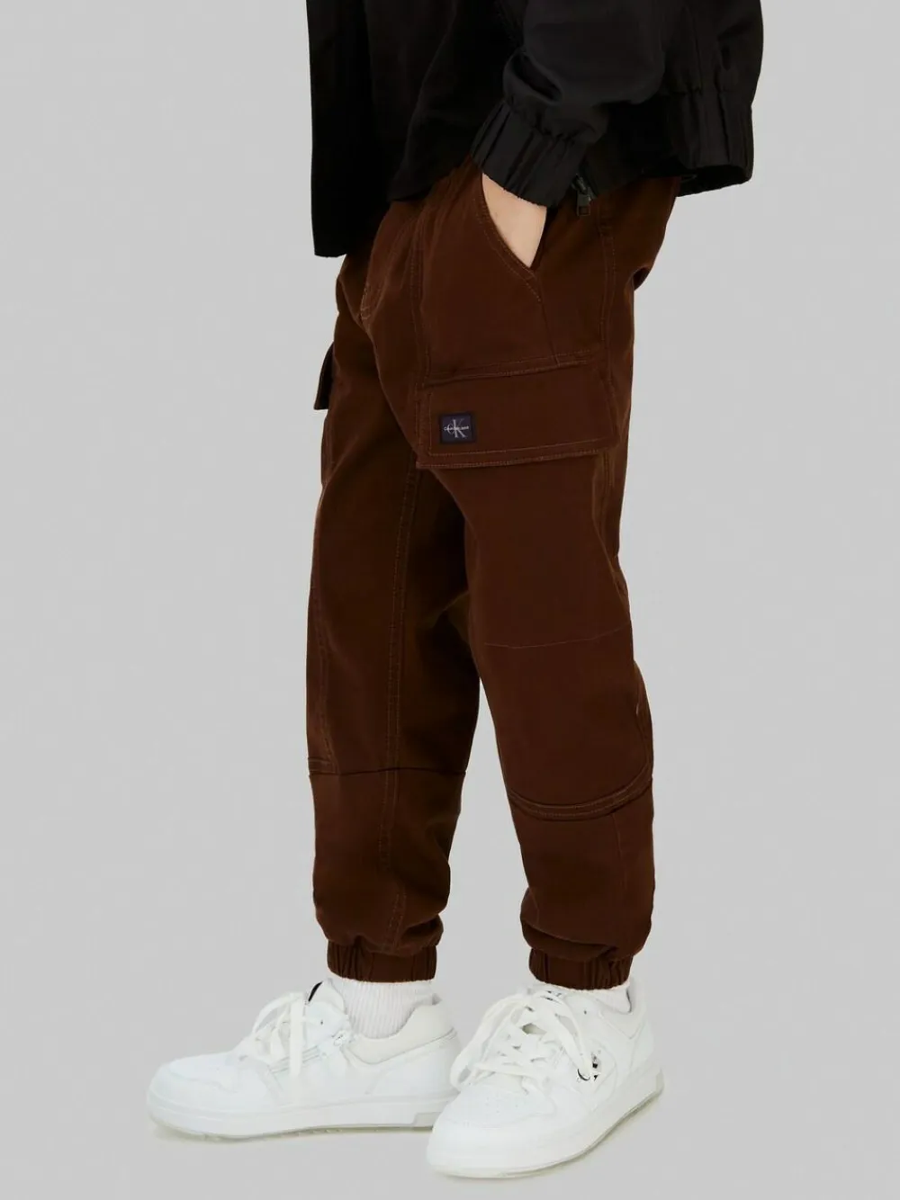 Calvin Klein Jeans Relaxed Sateen Cargo Brown Trousers^BOY Pants & Chinos