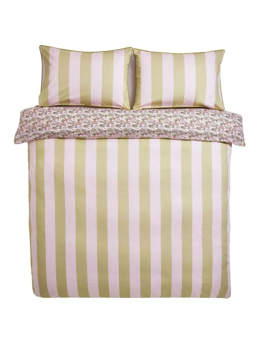Create a whimsical and cosy bedroom sanctuary with the reversible Cath Kidston Pink Tiny Town 180 Thread Count Duvet Cover and Pillowcase Set. This charming set provides two looks in one: one side features a delicate ‘Tiny Town’ print, composed of subtle floral and building motifs in soft pink and sage green hues. The reverse showcases a bold, cheerful vertical stripe pattern in alternating pale pink and olive green bands. Crafted from comfortable 180 thread count cotton fabric, this set allows for easy styling changes and adds signature Cath Kidston charm. 180 thread count Reversible Tiny Town print Machine washable. Duvet Cover and Pillowcase:100% Cotton