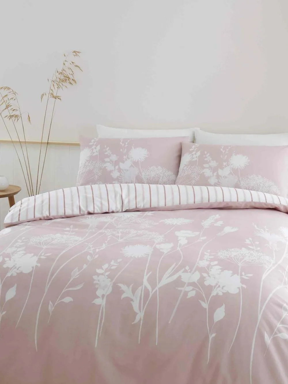 Catherine Lansfield Blush Pink Meadowsweet Floral Reversible Duvet Cover Set