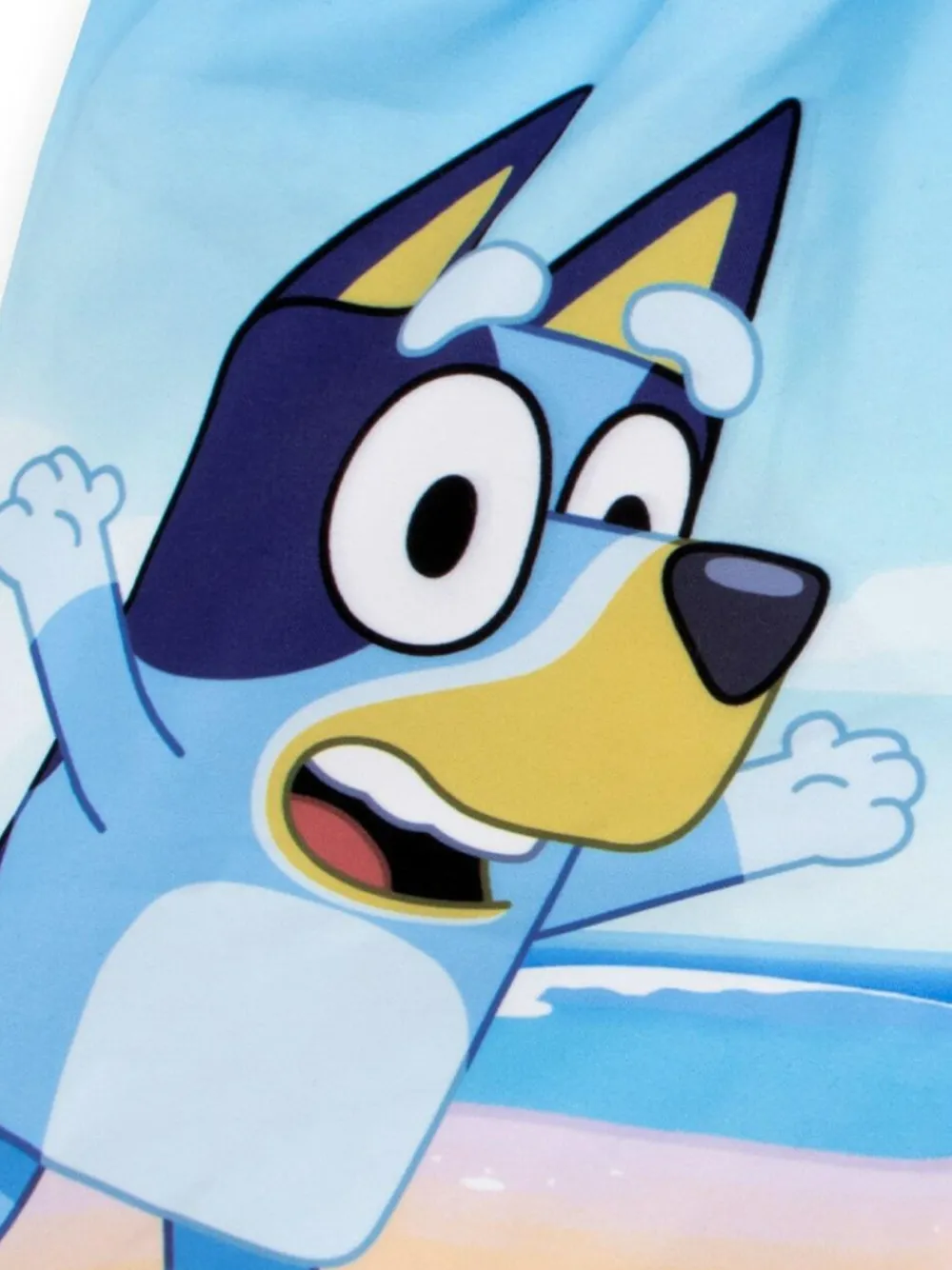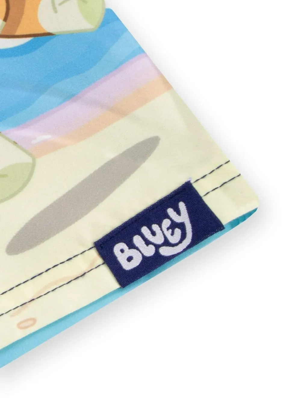 Embark on seaside adventures with these boys’ Bluey swimming shorts. Designed to delight any young fan of the popular TV show, these swimming trunks boys will love are a perfect blend of fun and functional style. The vibrant light blue swim shorts serve as the canvas for a lively scene featuring Bluey and Bingo in dynamic poses while on the beach, ready to inspire imaginations and encourage playful summer days under the sun. Crafted for comfort, these boys’ shorts feature an elasticated waistband that gives a comfortable fit, making them ideal for hours of swimming, building sandcastles, or simply enjoying a day out in their Bluey pool. The interior lining is soft against the skin, making these an ideal choice of boys’ swimming shorts for uninterrupted play. The board shorts are crafted from polyester, meaning these swimming trunks can withstand the rigors of active play, whether at the pool, the beach, or in the backyard. Adding to their practicality, these Bluey swim shorts boast a stylishly contrasting dark blue pocket on the back. This handy addition to the swim shorts boys will love is perfect for little ones to stash small treasures or snacks, adding a touch of adventure to each wear of the Bluey swimwear. The kids’ swim shorts also feature a Bluey logo hem tag, showing off your child’s love for Bluey and Bingo in a subtle yet stylish way. Whether your child is diving into the pool or exploring the shores during family vacations, these Bluey swim shorts give the ultimate in comfort and style. They’re not just boys’ swimwear; they’re a way to bring the playful spirit of Bingo and Bluey into everyday life. These boys’ shorts are also an excellent addition to any children’s swimwear, making them ideal for gifts for kids or as part of their boys’ swim shorts & trunks collection. So make a splash this summer with this enchanting Bluey swimwear, where fun meets functionality in every detail! Machine washable. 100% Cotton.
