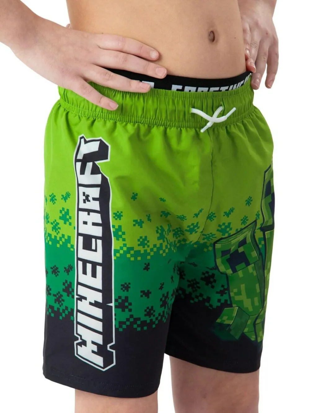 Ready to take your love of Minecraft beyond the screen? These Minecraft swim shorts are here to level up your little gamer’s summer style. Designed with a fun, pixelated pattern in signature green and black shades, these swim shorts boys will love are straight from the game itself. With two legendary Creepers on one leg and the bold Minecraft logo on the other, these boys’ shorts shout fandom from every block. The details don’t stop there! These boys’ swimming trunks feature a double waistband—one in classic black, complete with the phrase “Crafting By The Sea” in crisp white lettering. Whether you’re splashing around at the beach or hitting the pool for a swim, these Minecraft swimwear essentials are built for comfort, style, and serious gamer vibes. Perfect as part of any Minecraft swimming costume set or matched with a Minecraft towel for the full look. Looking for Minecraft gifts for boys or a boys’ swimming costume that’ll really impress? These boys’ swim trunks tick all the boxes. From everyday play to holiday adventures, this kids’ swimwear is an awesome pick for birthdays, holidays, or spontaneous surprises. Whether you’re shopping for boys’ swimwear, children’s swimwear, or Minecraft swimming costume boys, these boys’ swim shorts and trunks are a top-tier choice for any fan. Dive into the pixel-perfect world of Minecraft swim—just don’t forget your pickaxe! Machine washable. 100% Polyester.