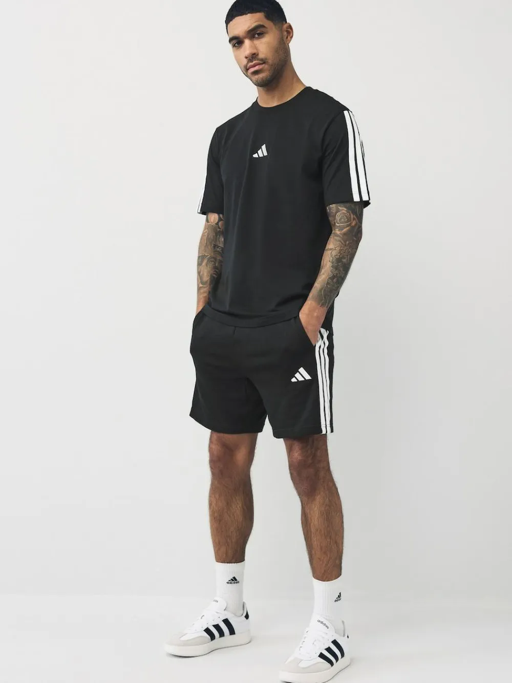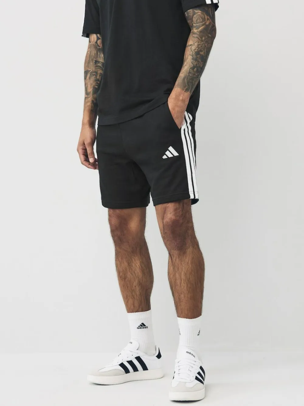 Clearance adidas Black White Essential 3-Stripes French Terry Shorts