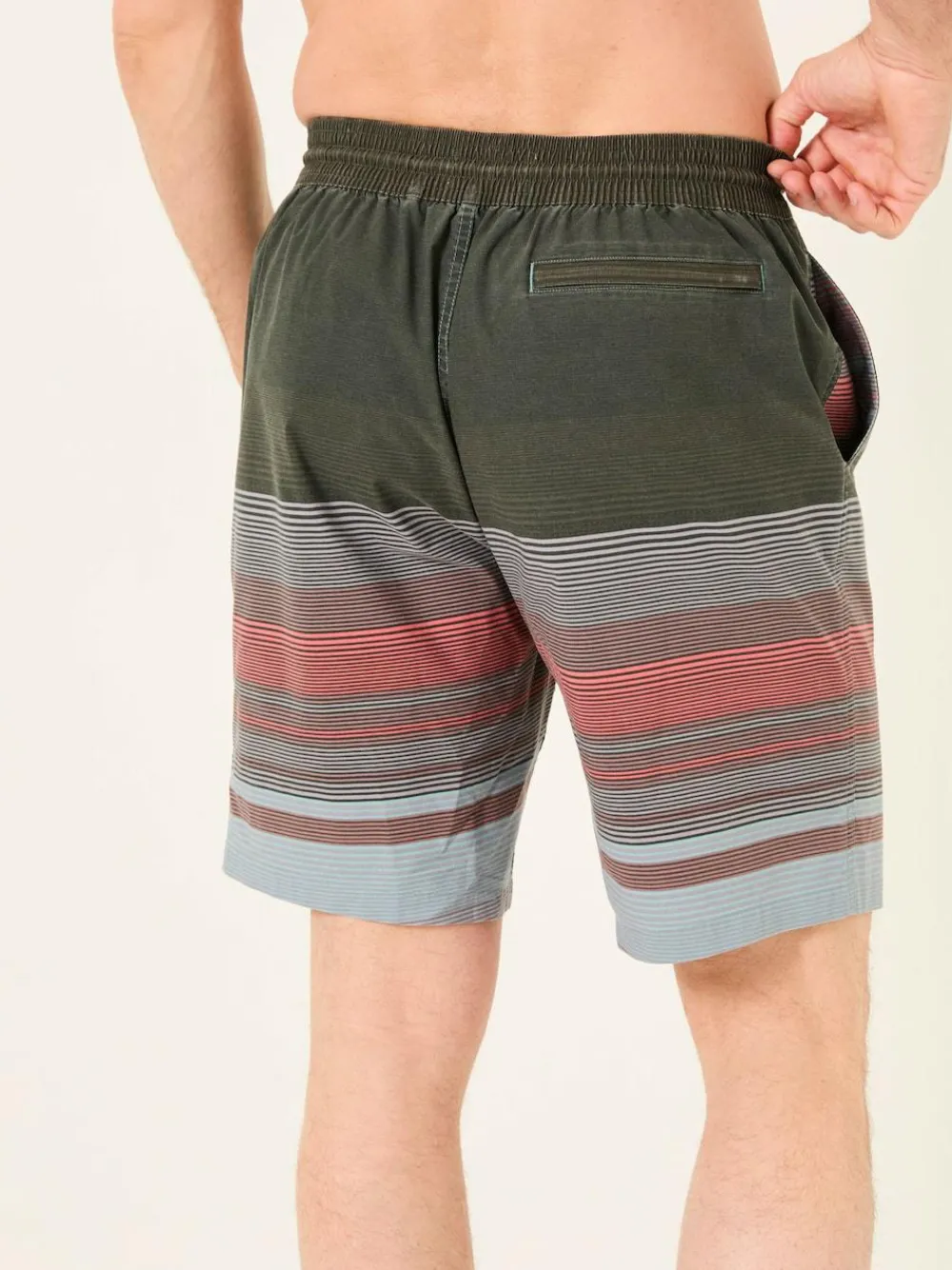 A true essential for your holidays, our Camber Stripe Swim Shorts are crafted from a comfortable fabric blend for a lightweight feel. They feature an elasticated waist with a drawstring tie for the perfect fit, plus we’ve added convenient pockets. Pair with some flip-flops and sunglasses while relaxing on the beach or by the pool. Lightweight, quick-drying fabric Elasticated waist with drawcord They’ve got pockets! Colourful stripe print 22cm inside leg length Measurements: Model is 6ft 2”/188cm and wears UK size M. Machine washable. Body 52% Cotton, 43% Recycled polyester, 5% Elastane. Lining 100% Recycled polyester.