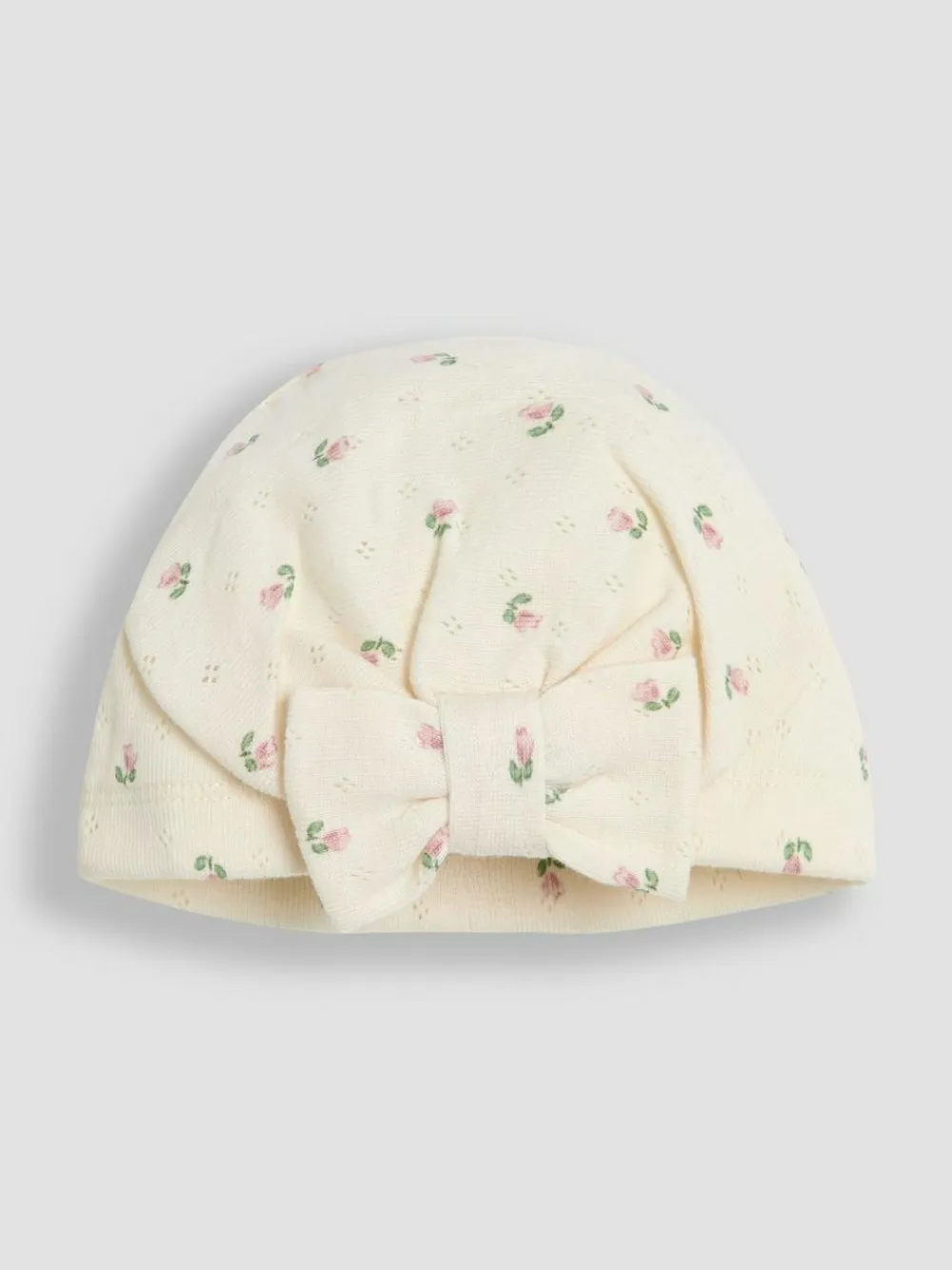 All wrapped up in a sweet little bow with this adorable turban! Made from cotton, with a ditsy floral print, it’s both cosy and breathable, and simply slips on and off. All-Over ditsy floral print. Bow to front. Machine washable. 100% Cotton.