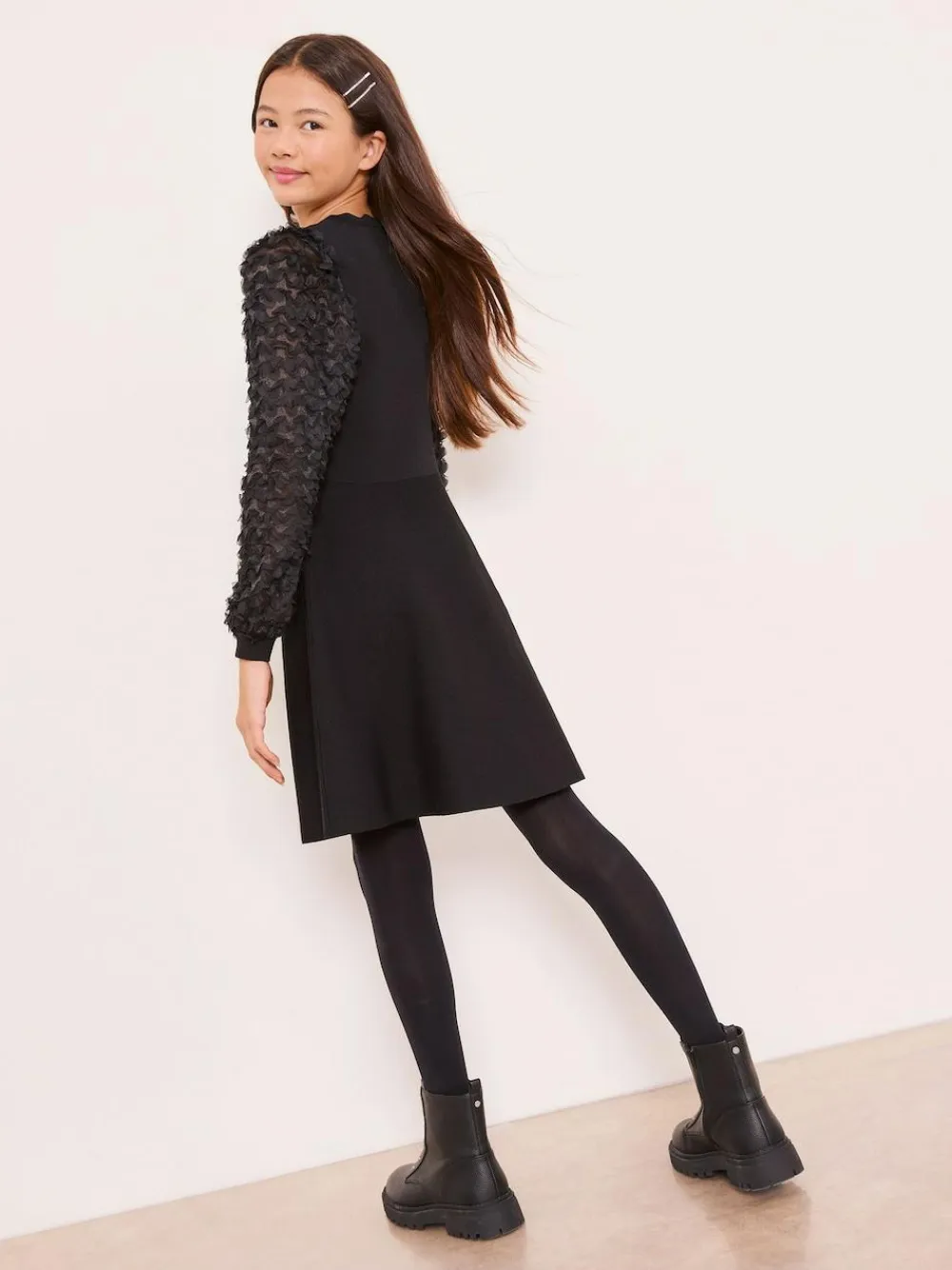 Clearance Lipsy Black Textured Sleeve Knit Dress (5-16yrs)