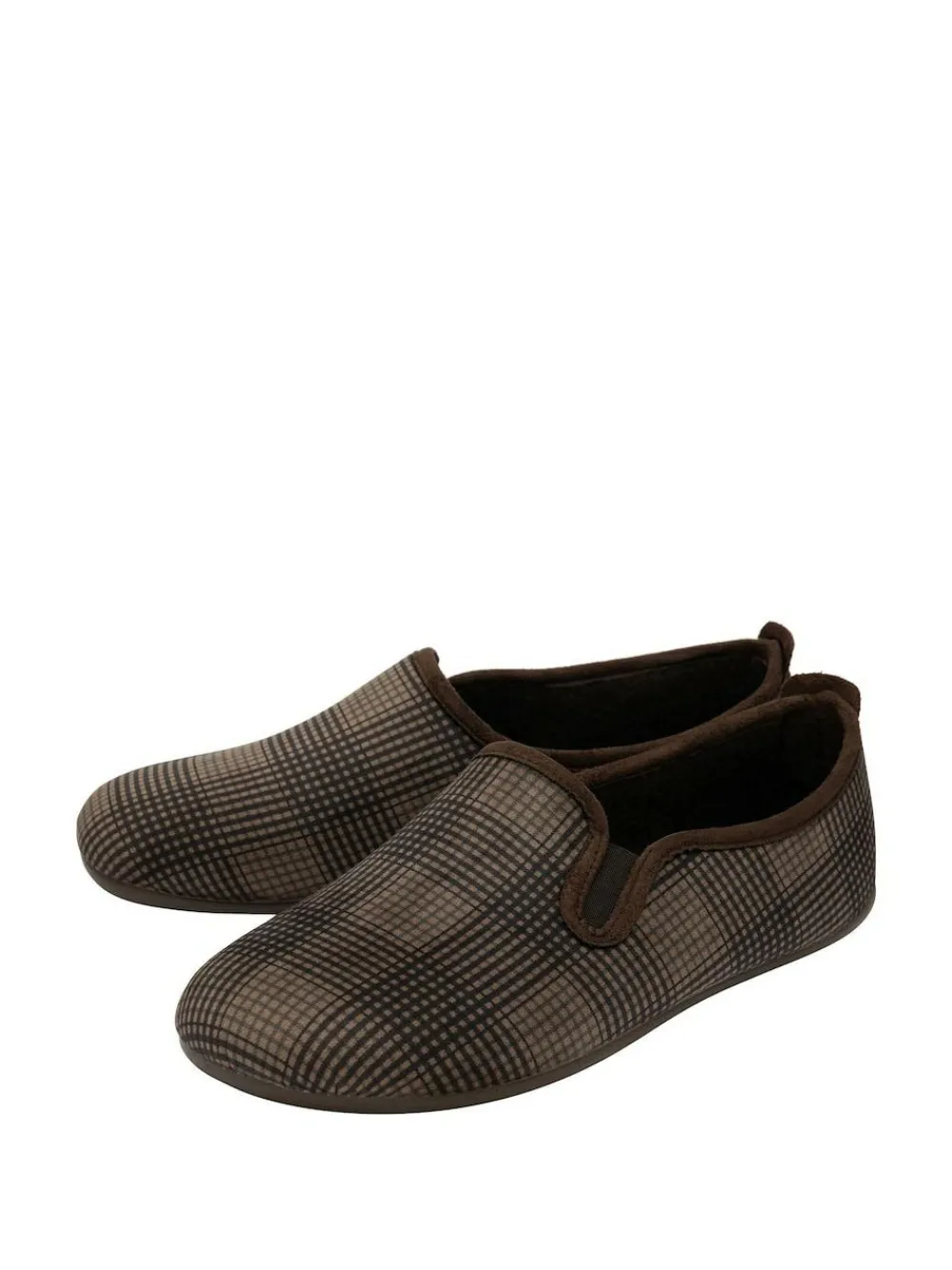 Clearance Lotus Brown Check-Print Full Slippers