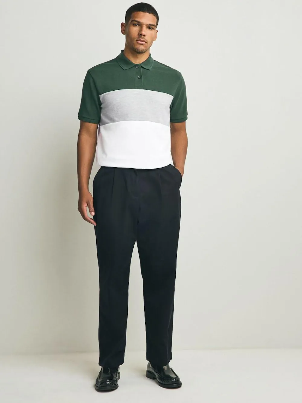Clearance Next 100% Cotton Short Sleeve Button Up Block Polo Shirt Green/Grey