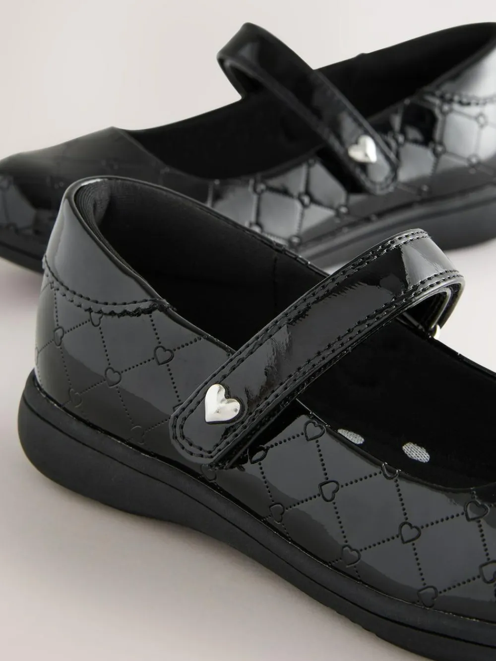 Clearance Next Black Patent Heart Embossed School Mary Jane Shoes