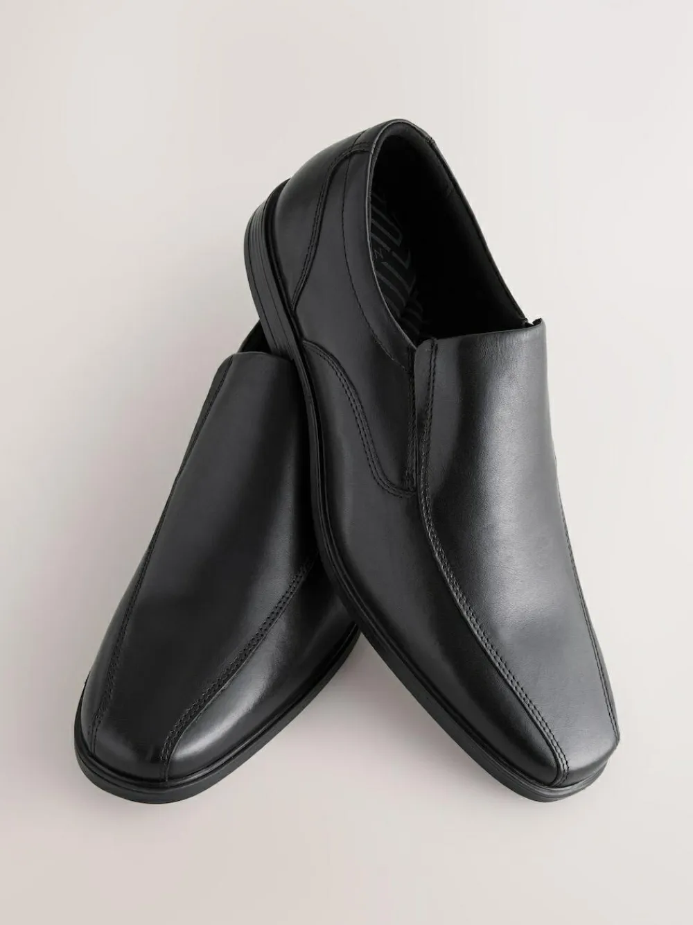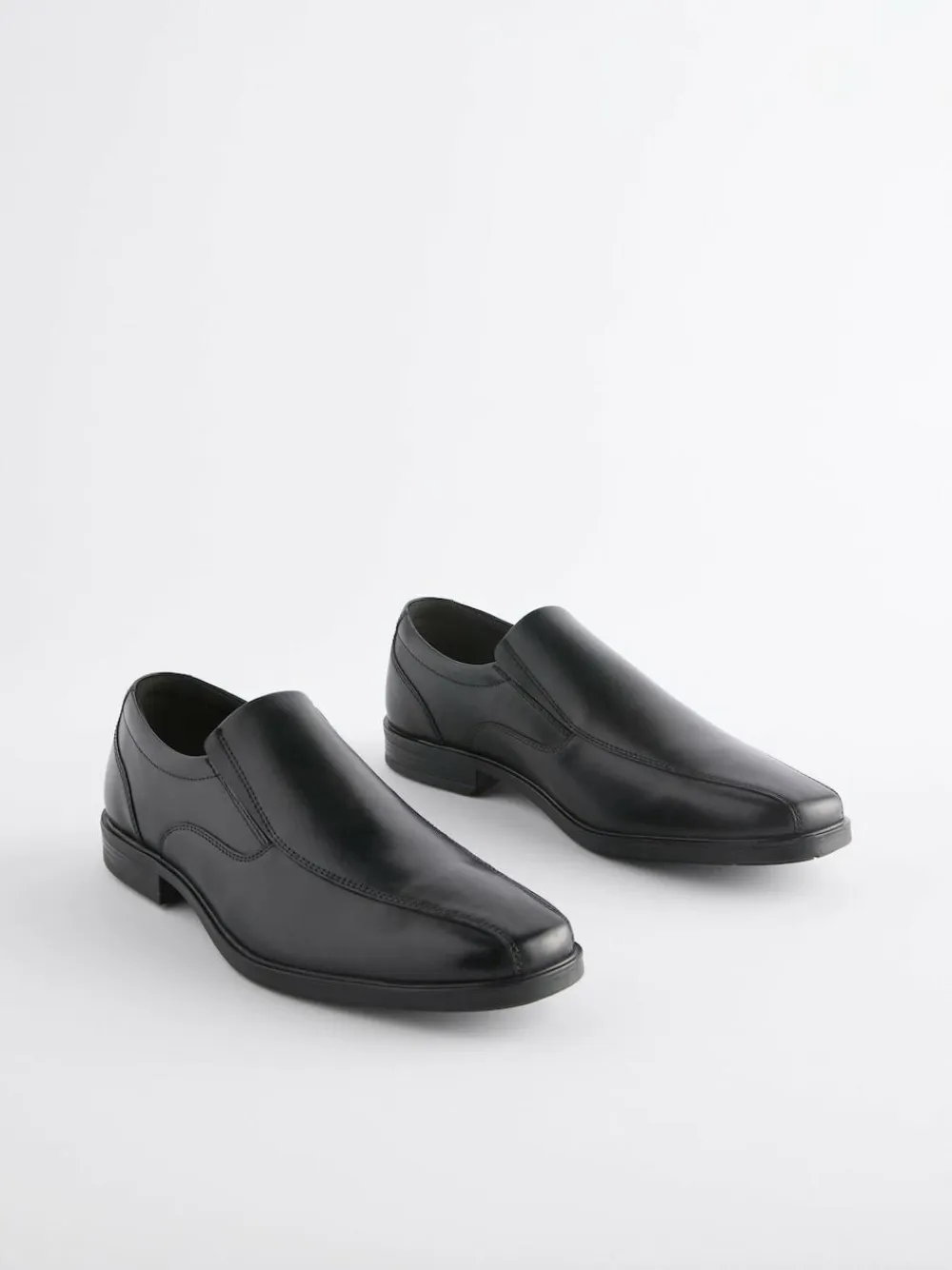 Our classic and smart black panel slip-on shoes are ideal for work, school, college or any formal occasion that requires you to spruce up. Designed with an elongated square toe and elasticated tabs for ease of getting on and taking off. Finished with an Ortholite foam sole for added comfort, this easy slip-on style is a real wardrobe winner. Leather Slip-on Ortholite foam Wide Fit for extra comfort Upper – Leather, Lining & Sock – Textile, Sole – Other Materials.