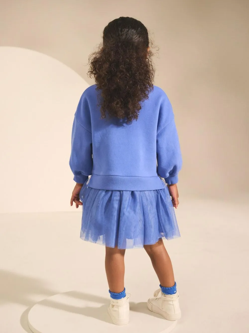 This charming Sweat Party Dress is a comfortable yet festive option for her special events. This sweat dress is adorned with playful 3D designs on the bodice and features a flared skirt made from delicate mesh fabric for a lovely texture. With 3D embellishments Mesh skirt detail Sweat fabric bodice Machine washable. Main 85% Cotton, 15% Recycled polyester. Lining 100% Cotton. Mesh 100% Recycled polyester.