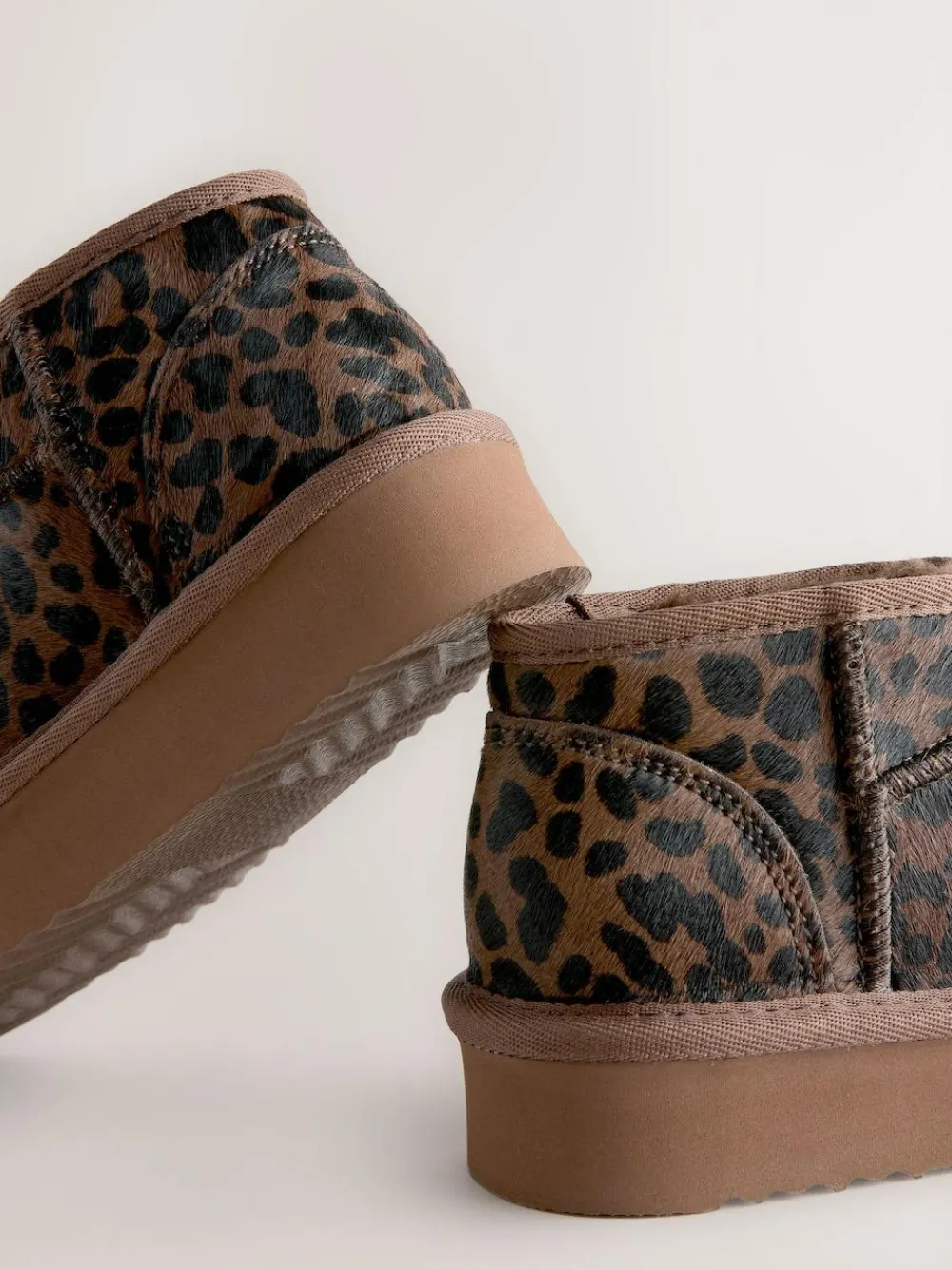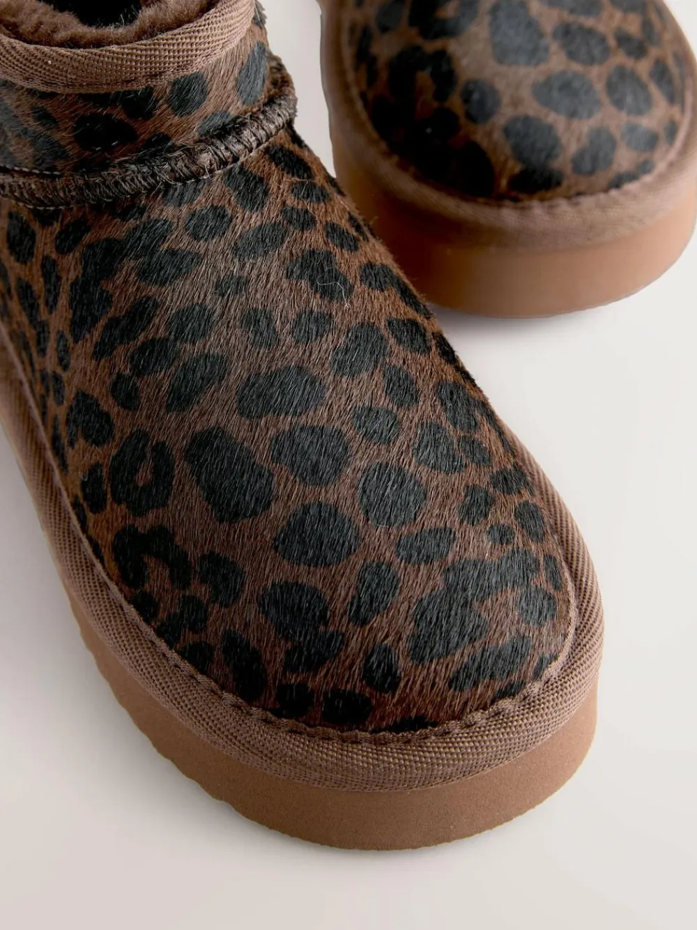 Clearance Next Chocolate Brown Leopard Print Standard Fit (F) Flatform Mini Warm Lined Water Repellent Suede Pull-On Boots