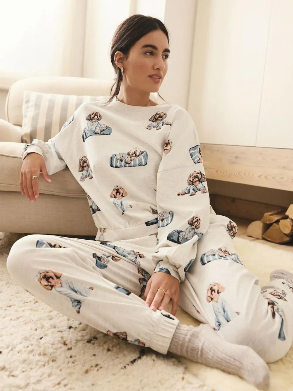 Drift off in cosy comfort with these Grey Charlie The Cockapoo Long Sleeve Pyjamas. This fun two-piece set is perfect for a relaxed night’s sleep, featuring a charming, fun all-over design of a cockapoo. Crafted to be incredibly cosy and comfortable, the fabric is cotton rich, offering a soft and breathable feel. The top has long sleeves and the trousers feature a comfy elasticated waist and cuffed hems, making this a cheerful addition to your loungewear. 2 piece set Charlie the Cockapoo Long sleeve Comfy and cosy Machine washable. Pyjama Top and Pyjama Bottom 99% Cotton, 1% Viscose. Warning: Keep away from fire and flames., Our tall collection is designed to fit women 5’10” and above. This has been proportionally increased through the body, leg and sleeve to achieve the perfect fit. Available in sizes 8-20.