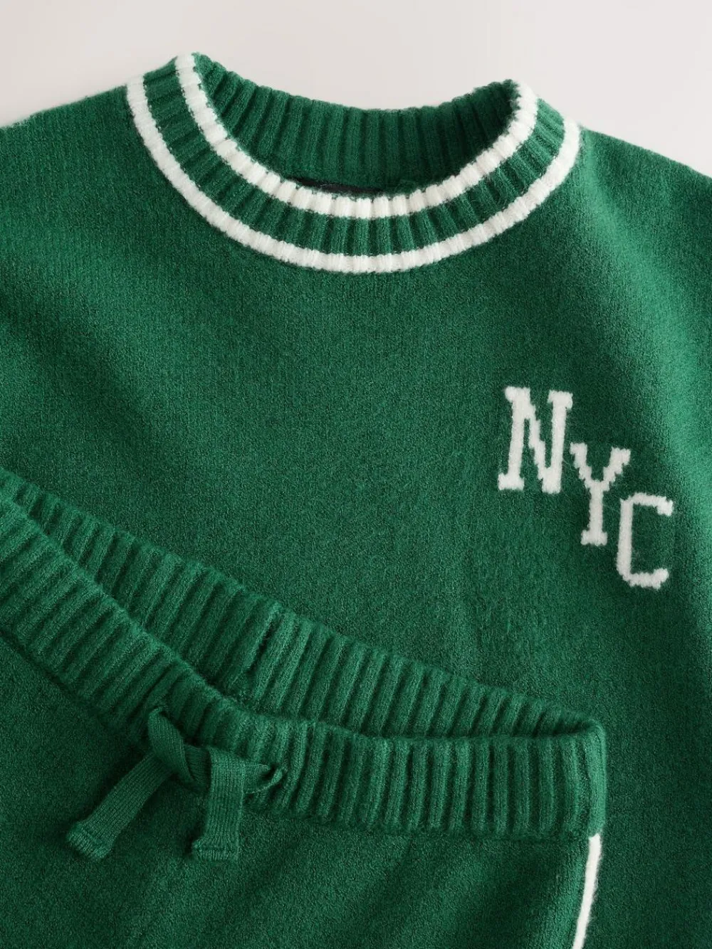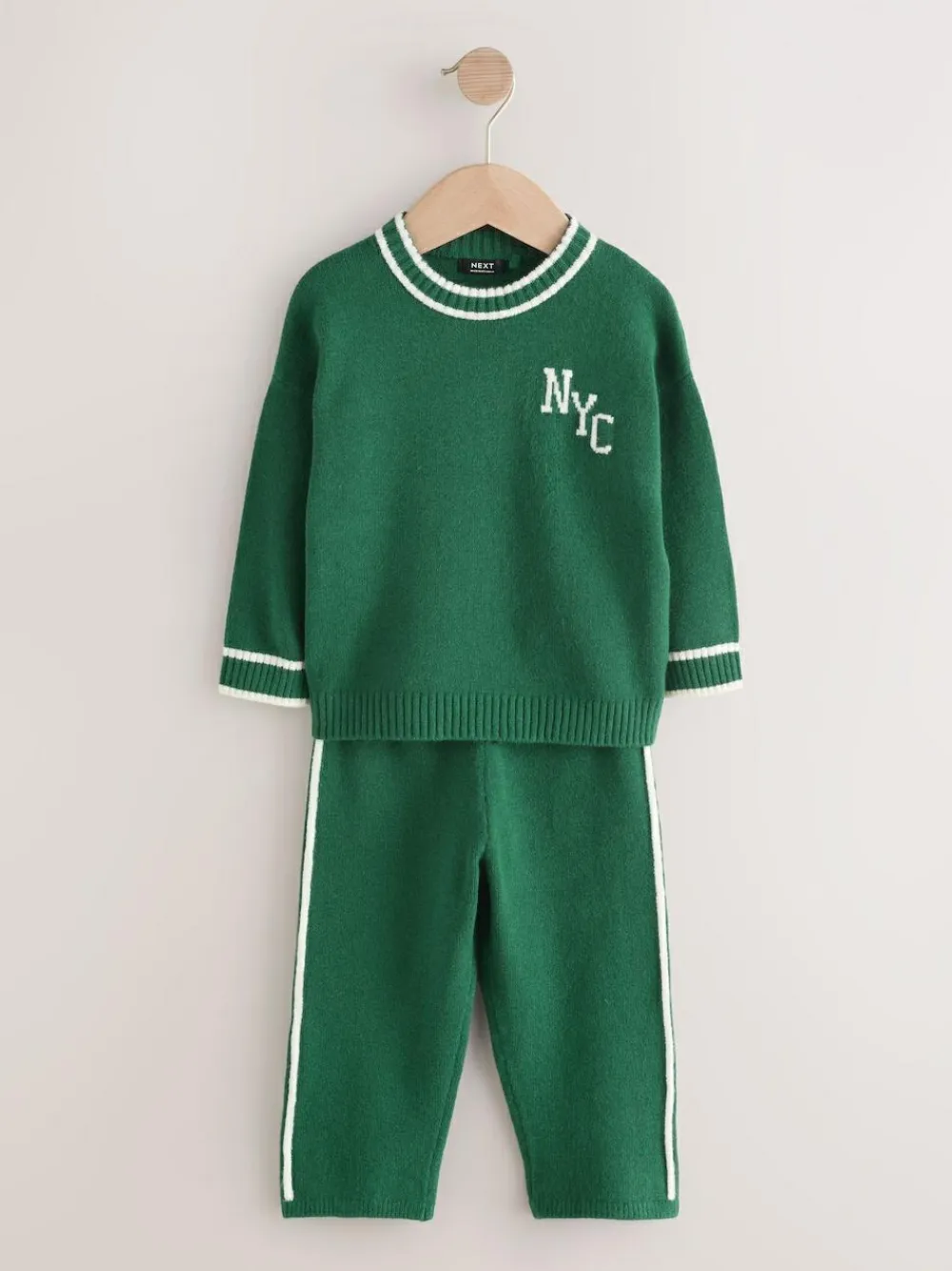 Clearance Next Knitted Crew Neck Jumper and Joggers Set (3mths-7yrs) Dark Green NYC