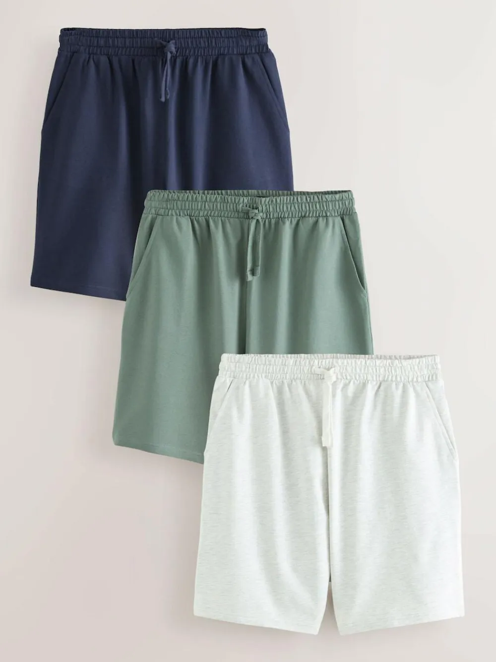 Clearance Next Loopback Soft Touch Shorts 3 Pack Navy/Green/Ice Grey