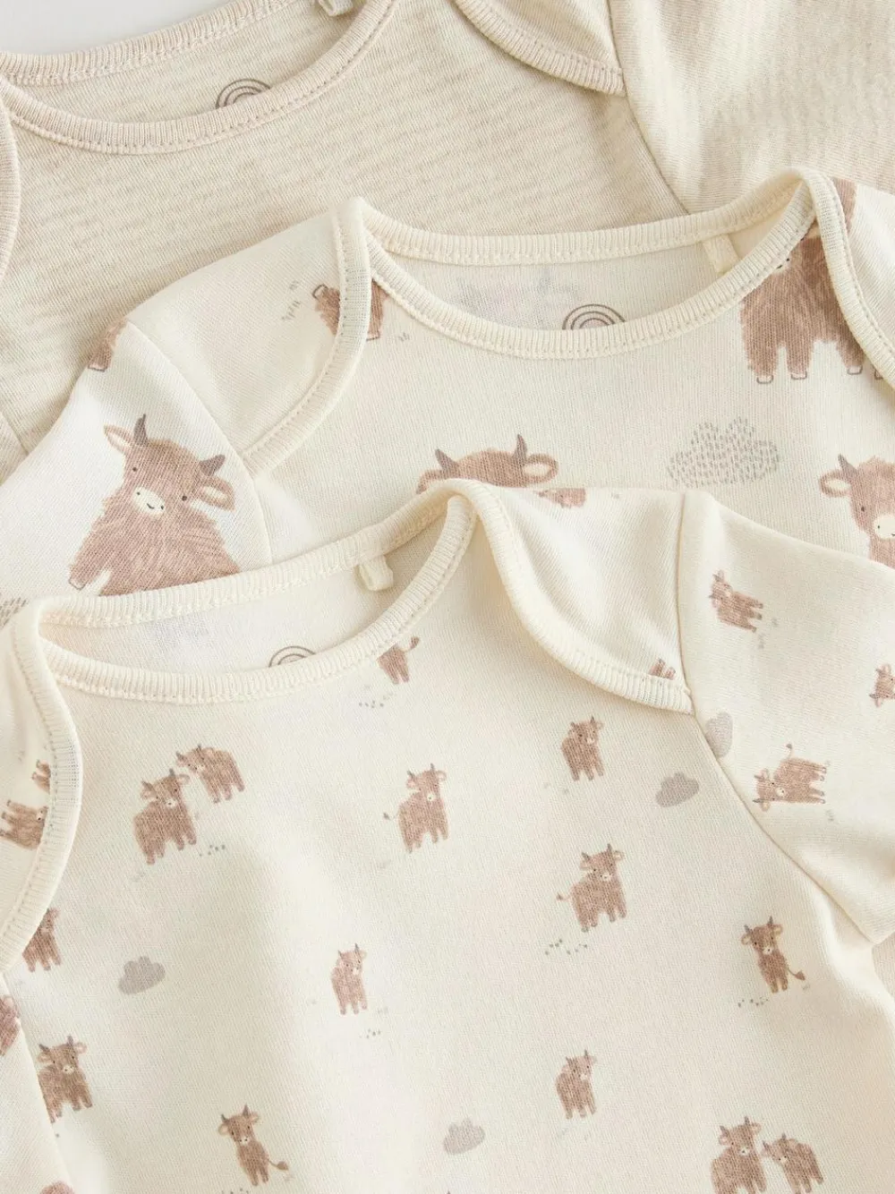 Clearance Next Neutral Hamish Long Sleeve Baby Bodysuits 3 Pack