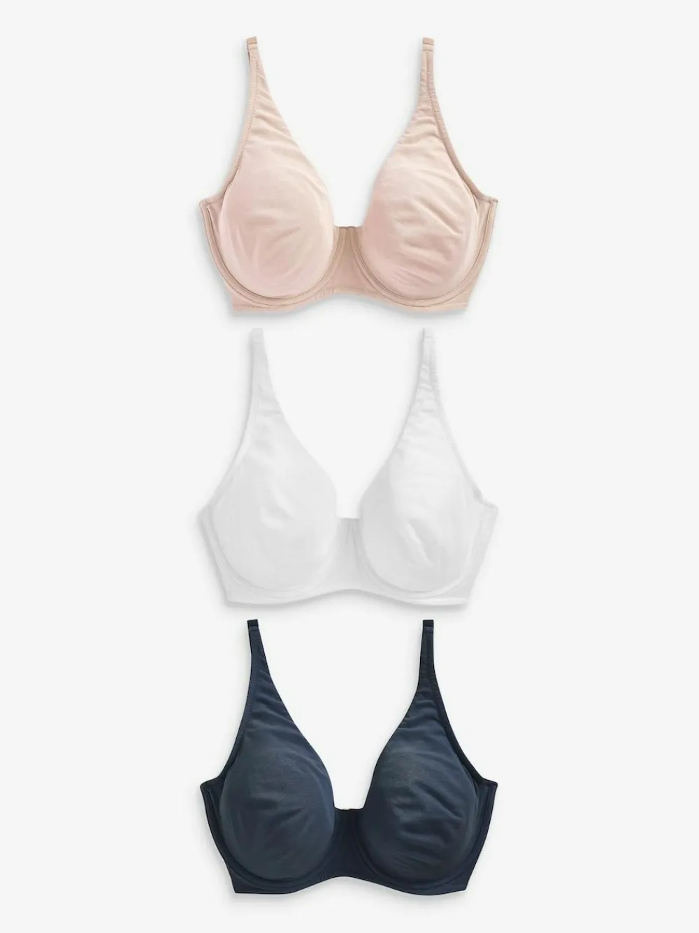 Clearance Next Non Pad Full Cup DD+ Cotton Blend Ultimate Comfort Bras 3 Pack Navy Blue/Pink/White