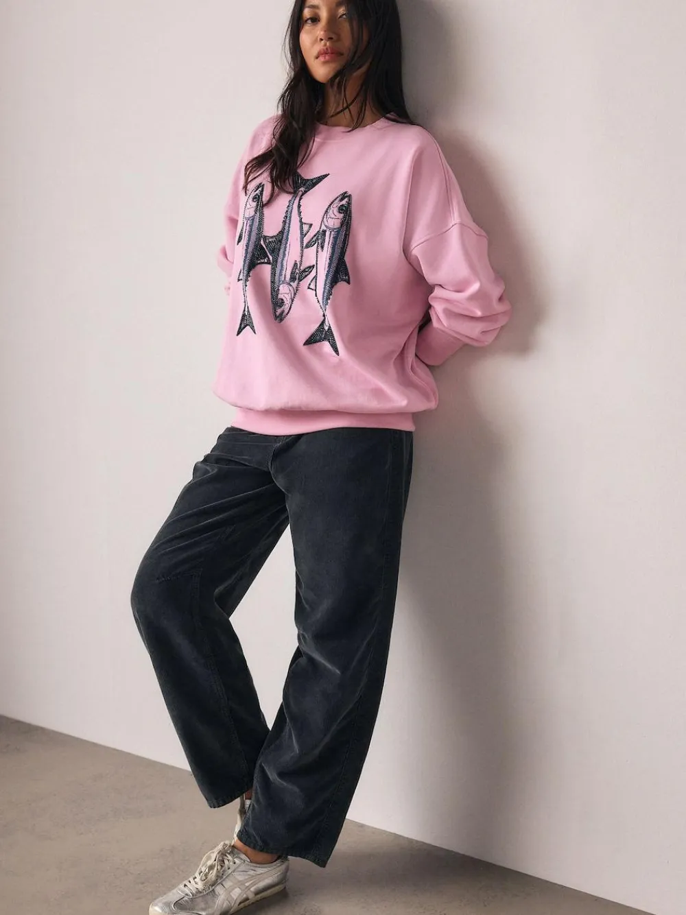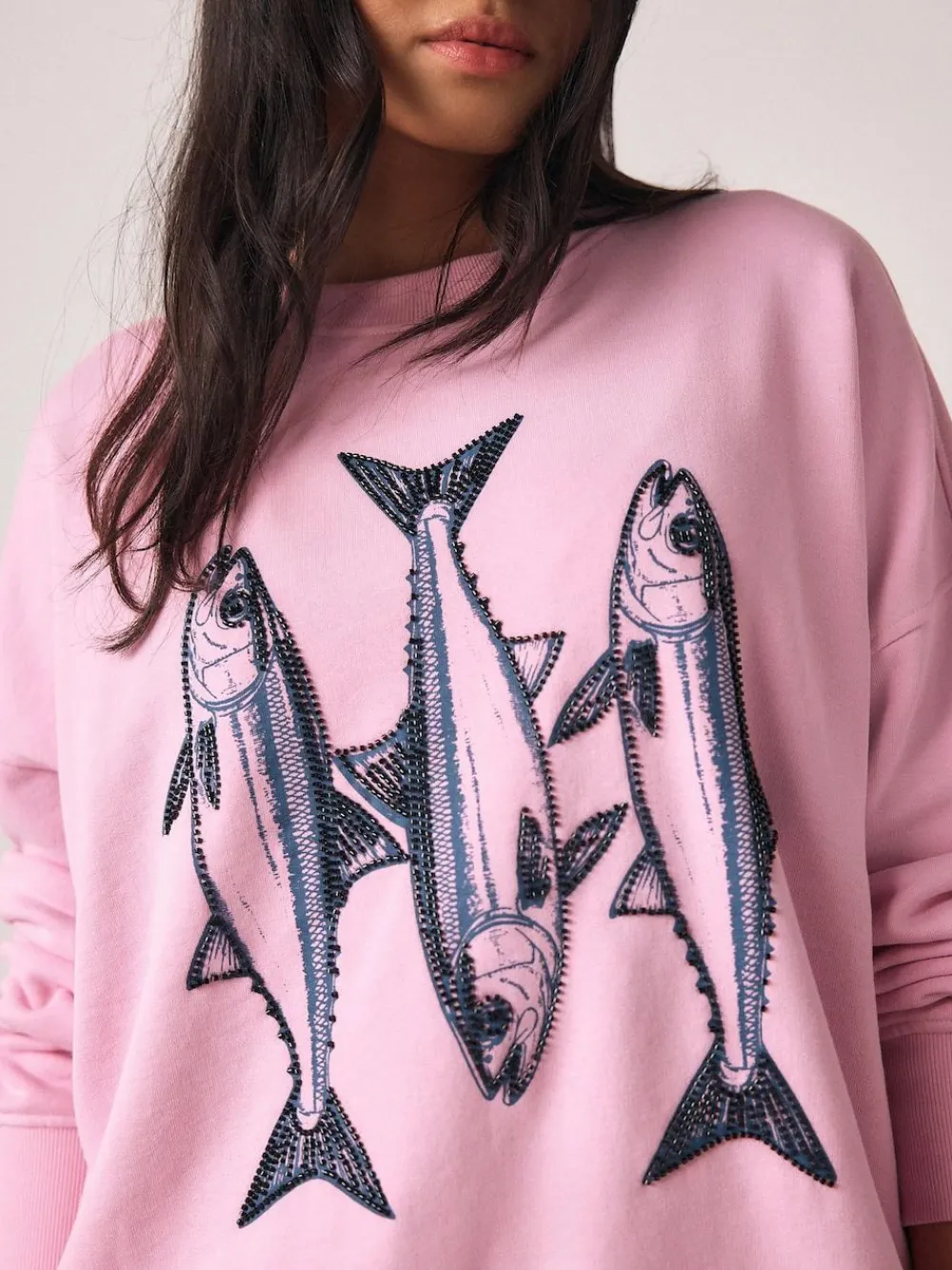 Clearance Next Pink Graphic Beaded Fish Graphic Sweatshirt