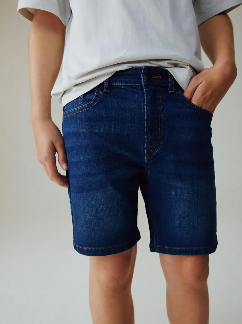 An essential for warmer weather, these dark blue denim shorts are a comfortable and versatile choice for his wardrobe. The soft denim fabric and classic five-pocket styling ensure a timeless look for his everyday adventures. With a zip fly and button fastening, they’re perfect for any casual day out. Denim fabric Five-pocket styling Zip and button fly fastening Adjustable waistband Belt loops 99% Cotton, 1% Elastane.
