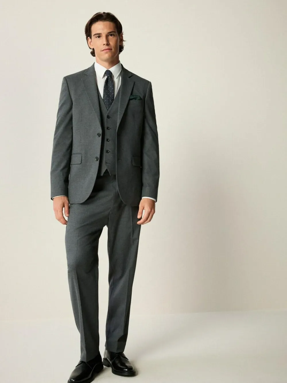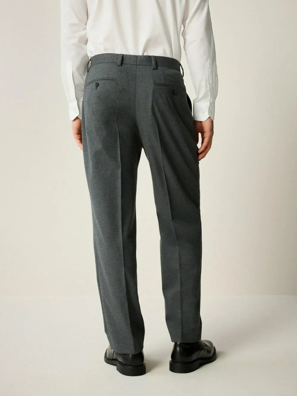 Cut to a slim fit, these grey suit trousers are made from a soft flannel brushed fabric with a flat front and a central leg crease, a formal waistband and a button and hook fastening. The trousers also feature side pockets, rear pockets and belt loops. Slim fit Soft brushed fabric Flat front Central leg crease Formal waistband Button and hook fastening Side pockets Rear pockets Check out The Suit Shop for more inspiration – https://www.next.co.uk/men/the-suit-shop 69% Recycled polyester, 29% Livaeco™ Viscose, 2% Elastane.