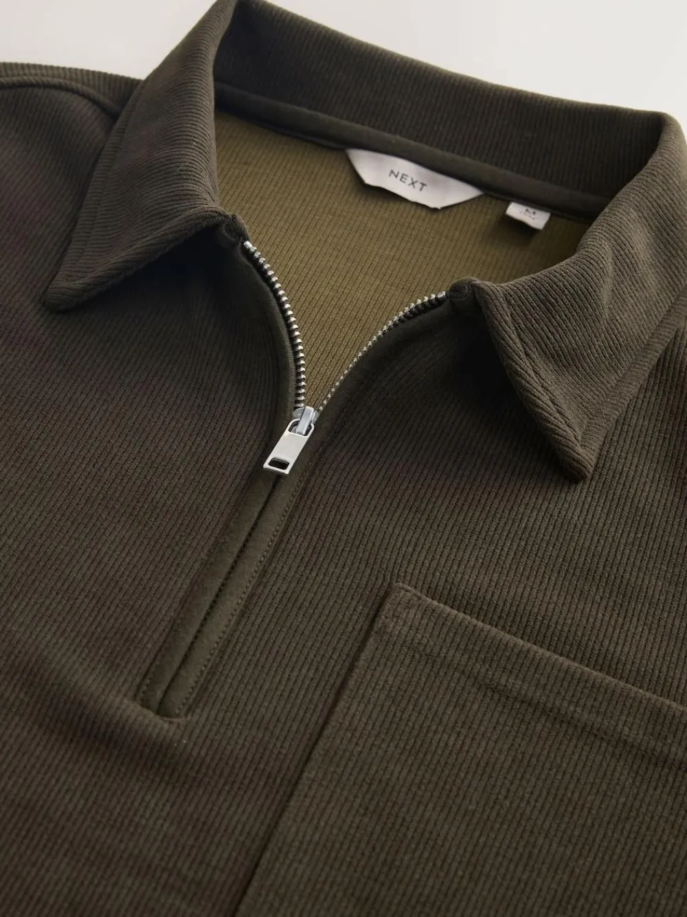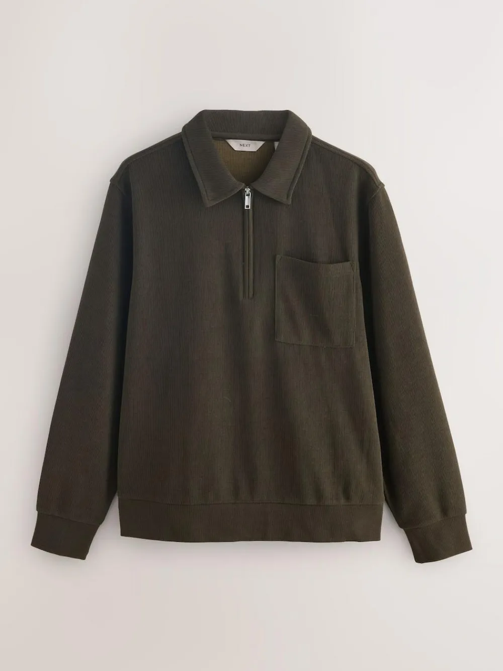 Clearance Next Soft Rib Texture Quarter Zip Neck Fleece Khaki Green