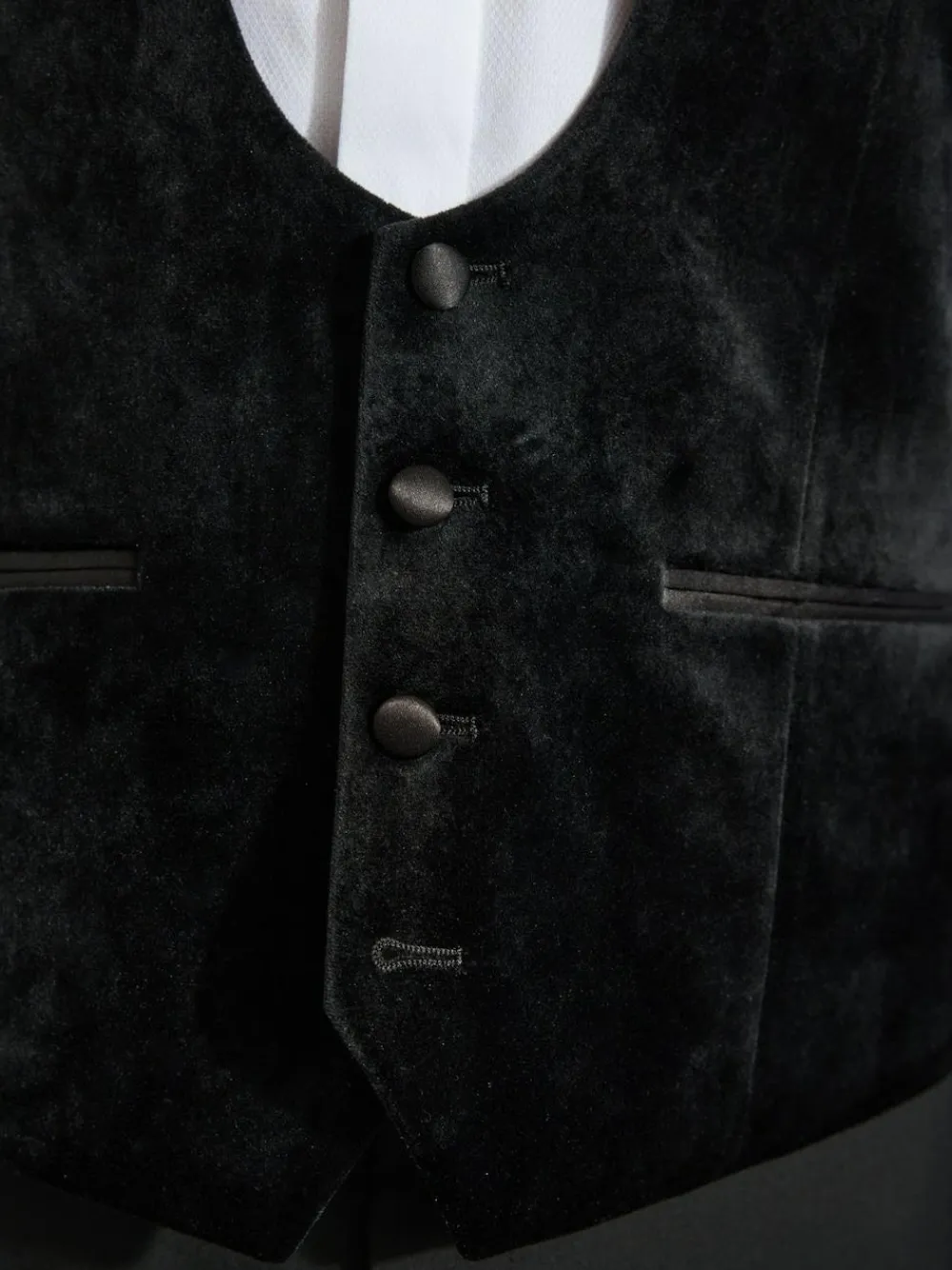Dress to impress with our velvet tuxedo waistcoat. This smart staple effortlessly elevates your special occasion looks and features button-through fastening, pockets and an adjuster on the back for the perfect fit. Pairing with the matching velvet blazer for a complete look. Velvet fabric Button fastening Pockets Matching items available Dry clean only. Main 100% Recycled polyester. Inner Lining 100% Recycled polyester. Outer Lining 100% Recycled polyester.