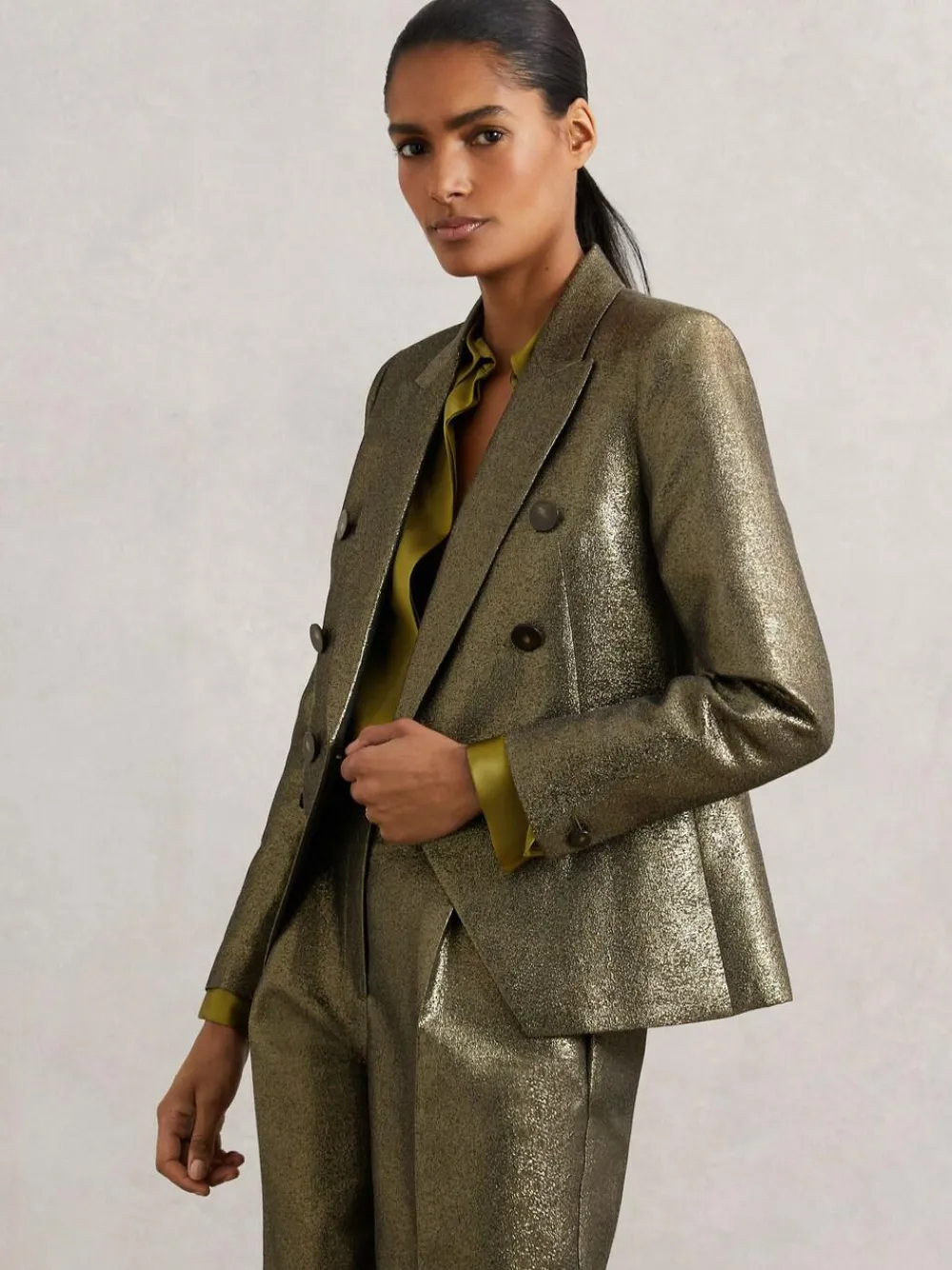 Be the first to review “Clearance Reiss Sienna Petite Double-Breasted Metallic Suit Blazer with Cotton Gold” Cancel reply
