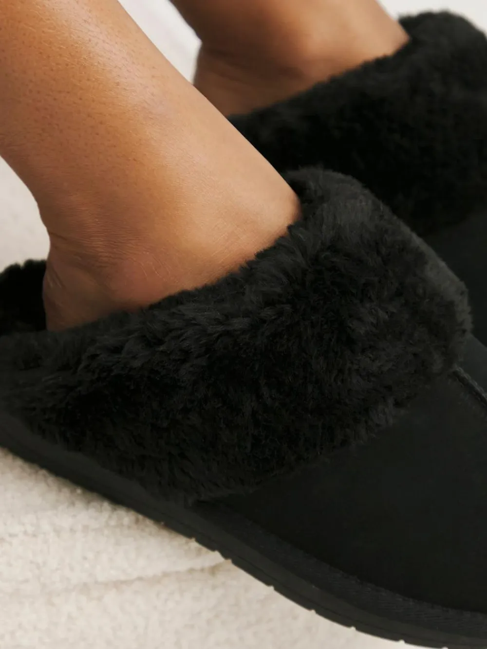 Be the first to review “Clearance Simply Be Extra Wide Fit Faux Fur Lined Suede Mule Slippers Black” Cancel reply