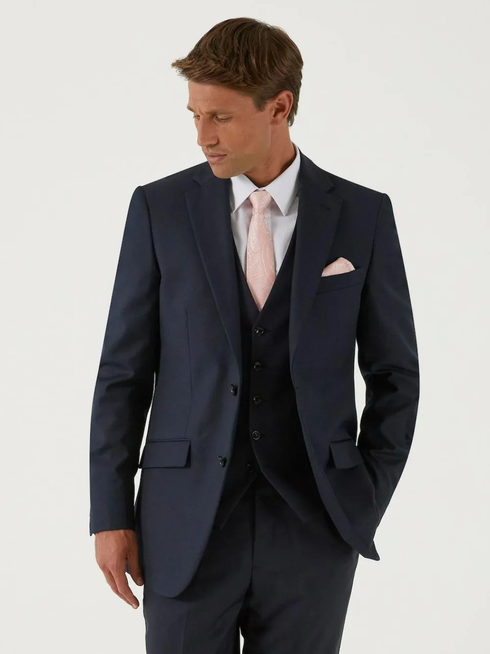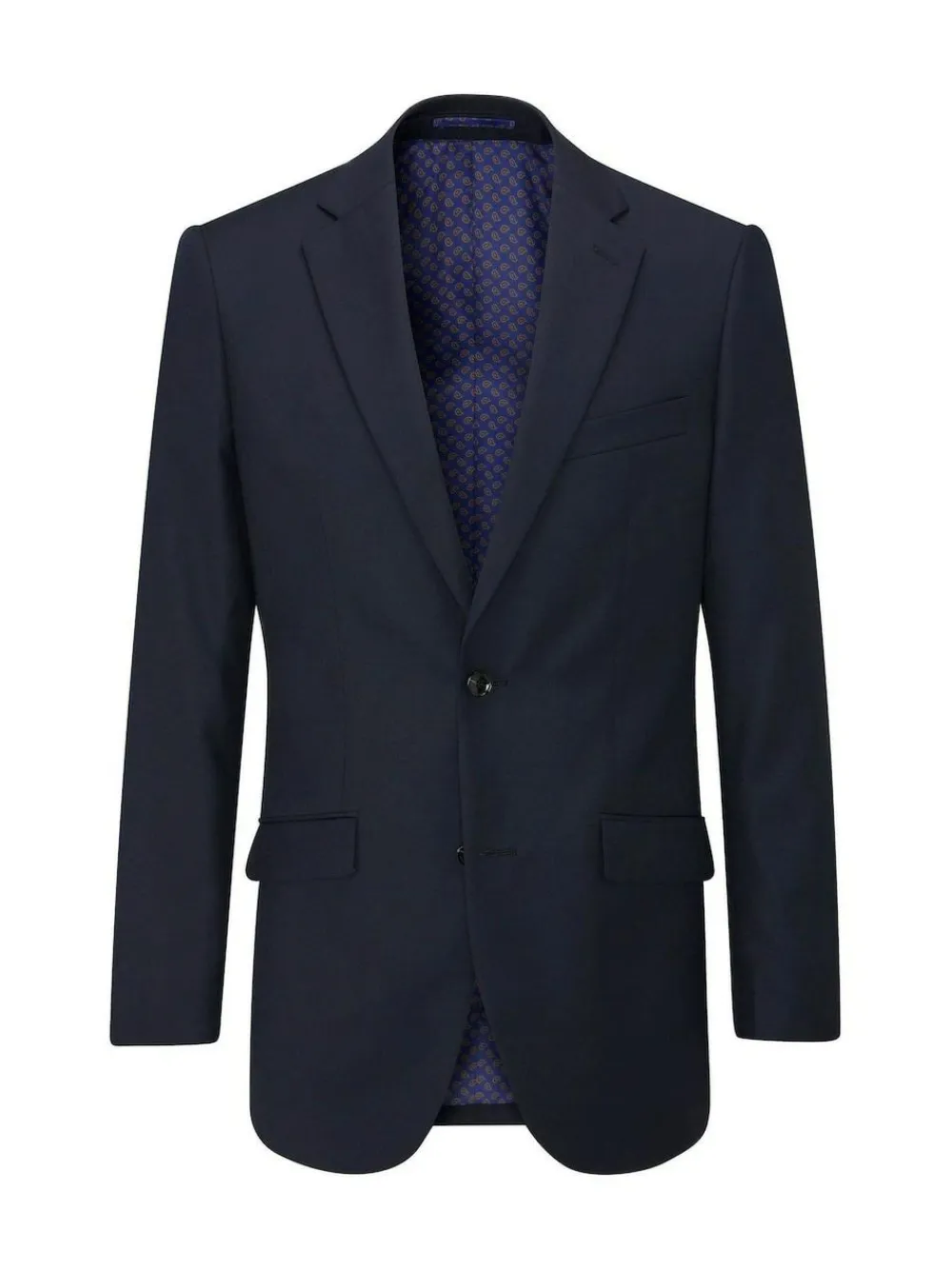 I’m Farnham, a tailored fit single-breasted suit jacket cut from a comfortable navy blue crease-resistant cloth. My wool blend fabric and classic colour make me the ideal choice for a good first impression.My features include slant flap pockets, twin side vents and a contrast pattern lining. See my matching Skopes Farnham Tailored Fit Suit Trouser and Skopes Farnham Single-Breasted Suit Waistcoat to complete the look.Wear me with my matching Farnham navy blue trouser and waistcoat.Dry clean only.70% Polyester, 30% Wool. Dry clean only. 70% Polyester, 30% Wool.