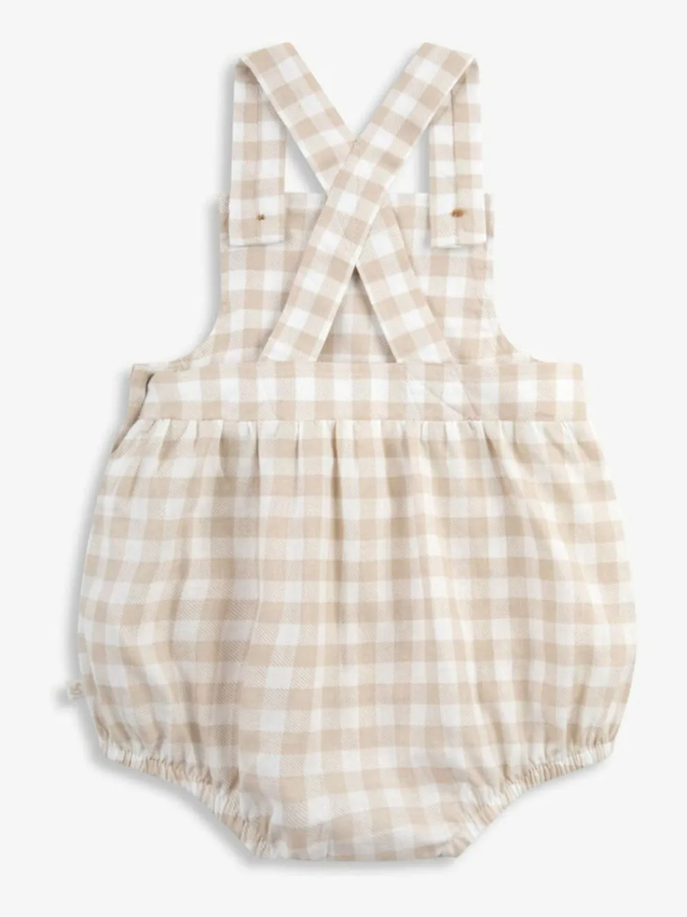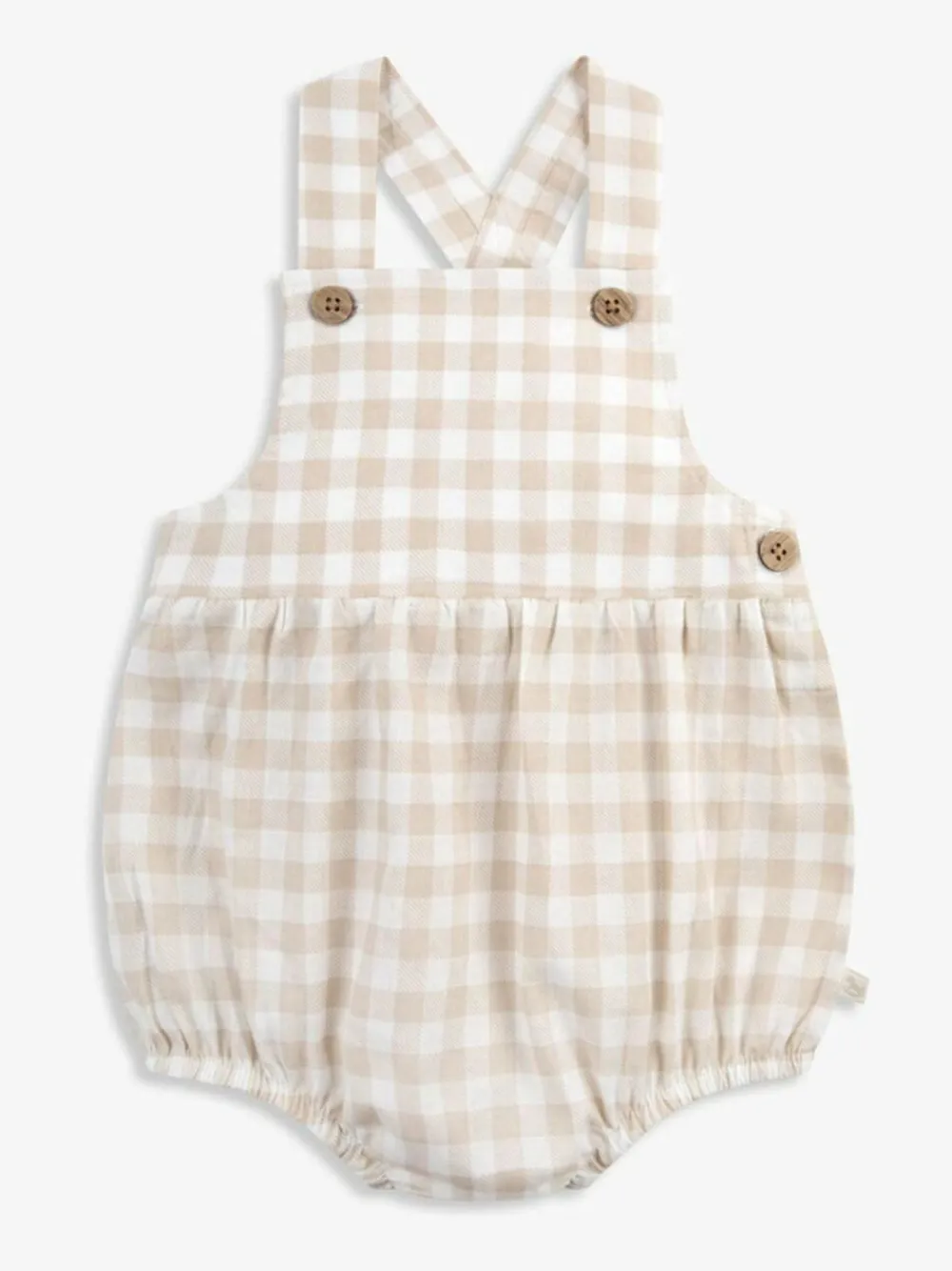 Clearance The Little Tailor Baby Woven Shorty 100% Cotton Romper Fawn Gingham