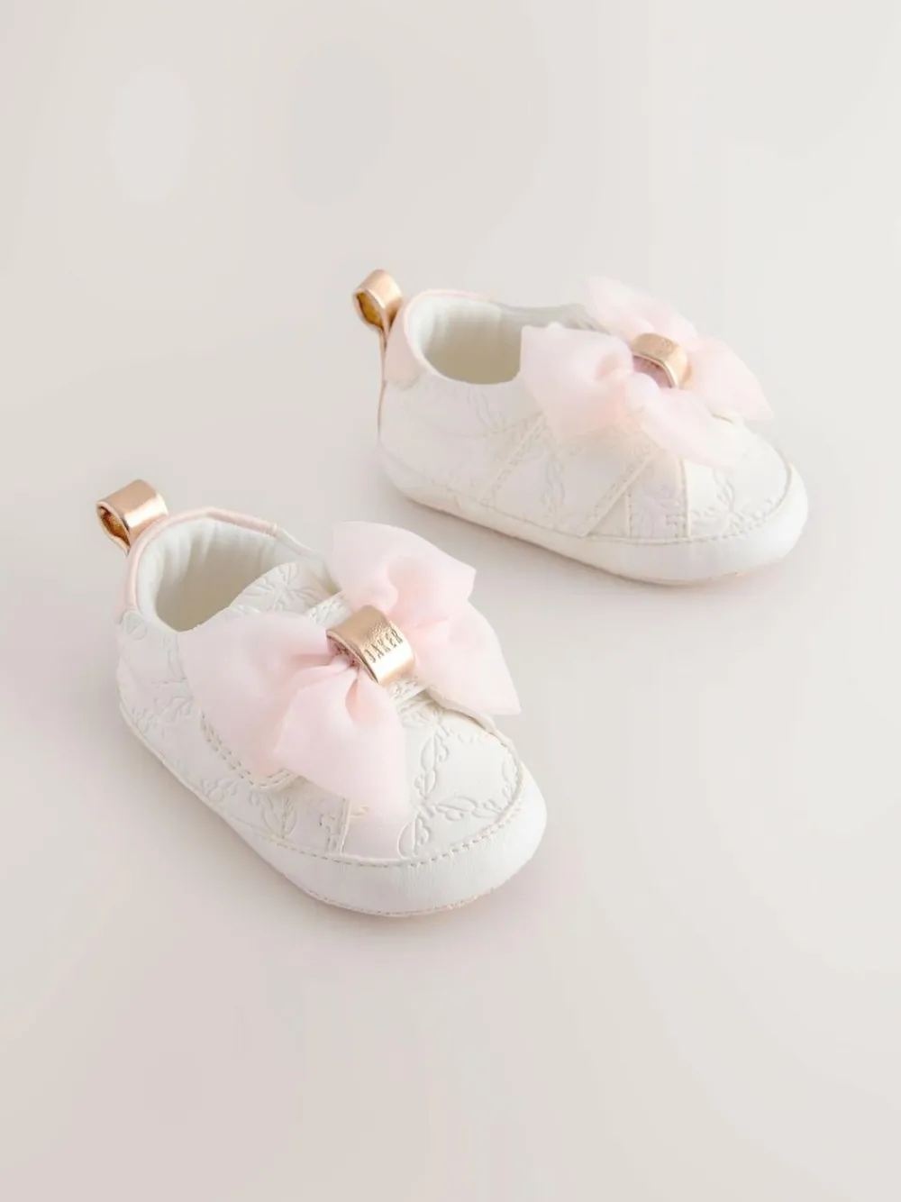 Discount Baker by Ted Baker Baby Girls Organza Bow Padders Trainers White/Pink
