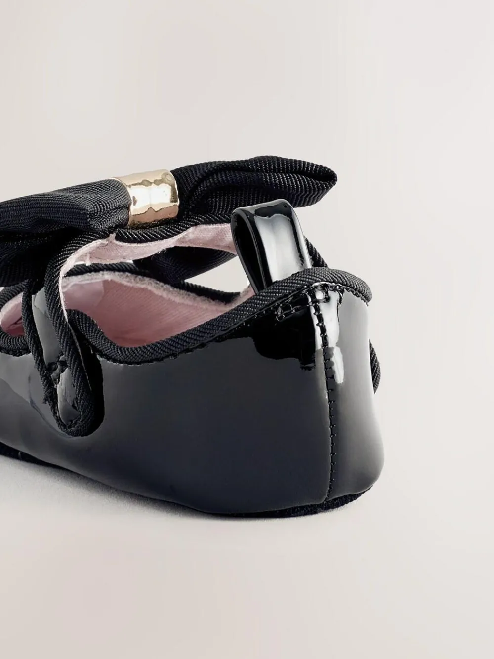 Cute and comfy, these adorable padder shoes from Baker by Ted Baker will be a beautiful addition to her first wardrobe. Featuring a glossy back patent upper with a grosgrain bow detail and shiny branded gold metal hardware, these pretty Mary Jane shoes also have a touch and close fastening on the strap for a secure fit. They are expertly finished with a soft fabric branded sole designed to take care of her delicate feet. Grosgrain bow Touch and close fastening Soft soles Upper – 80% PU, 20% Polyester, Lining. and Sock – 60% Polyester, 40% Cotton. Sole – 80% Cotton, 20% PU.