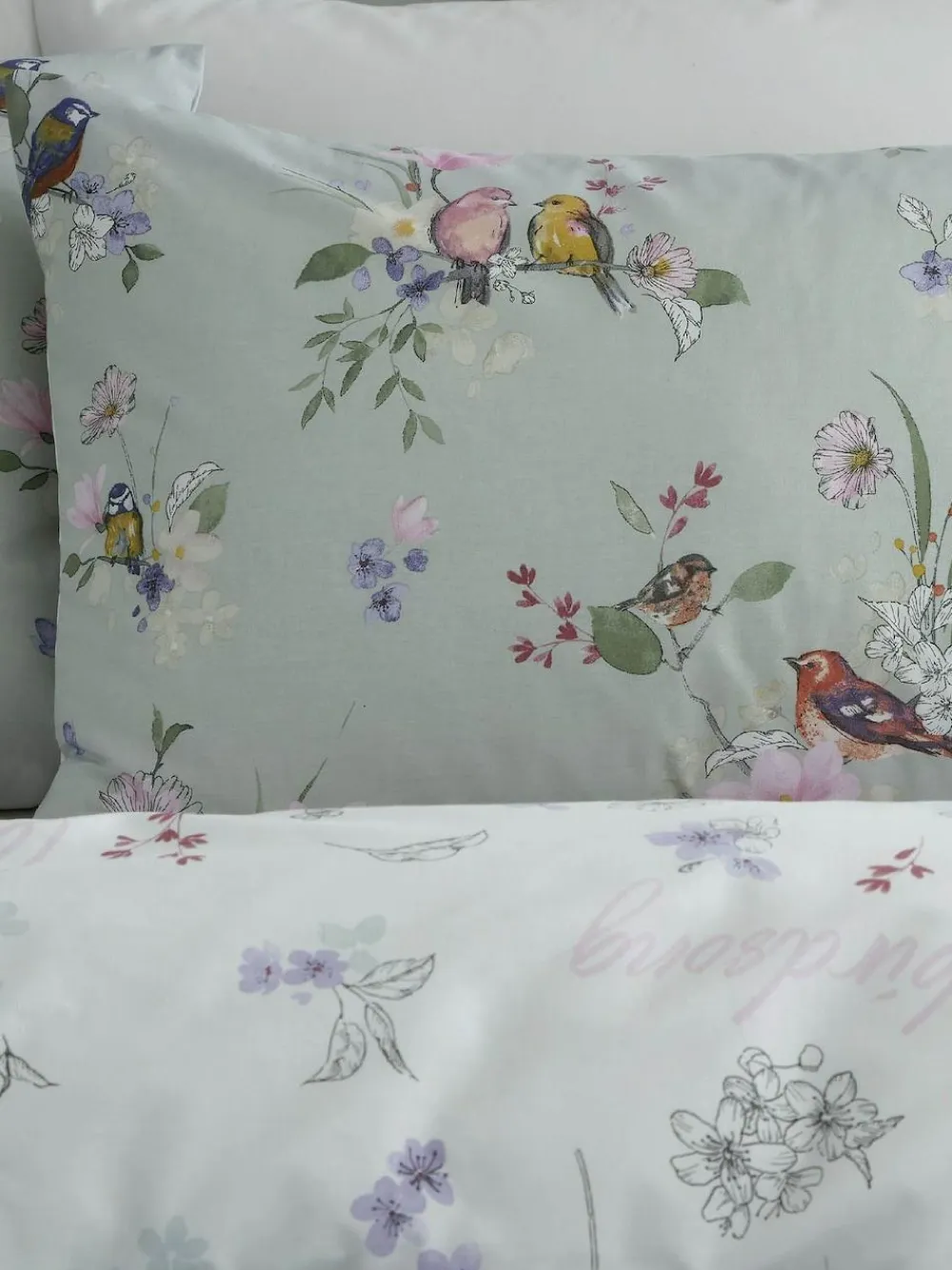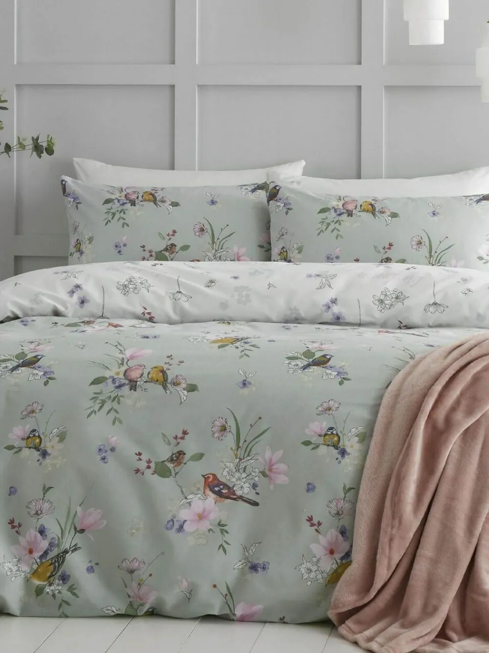 Discount Catherine Lansfield Songbird Reversible Duvet Cover and Pillowcase Set Green